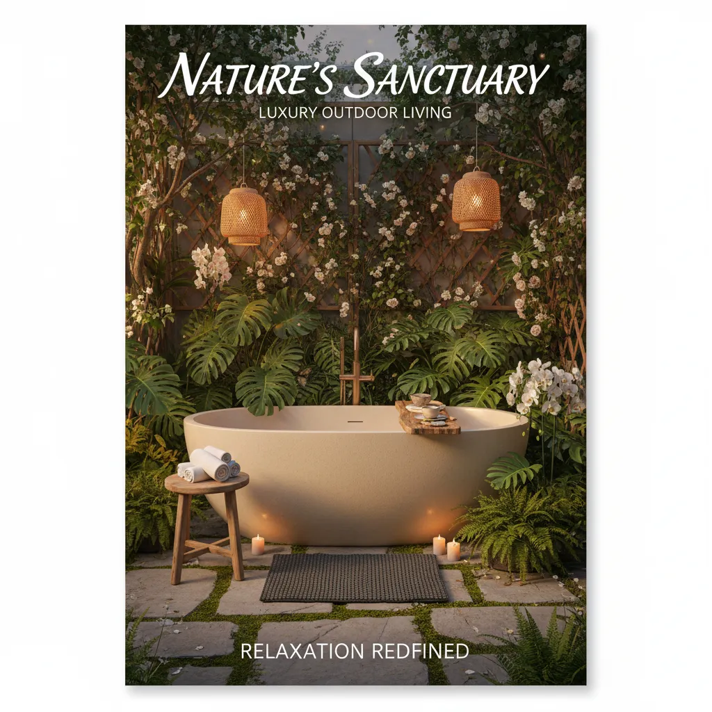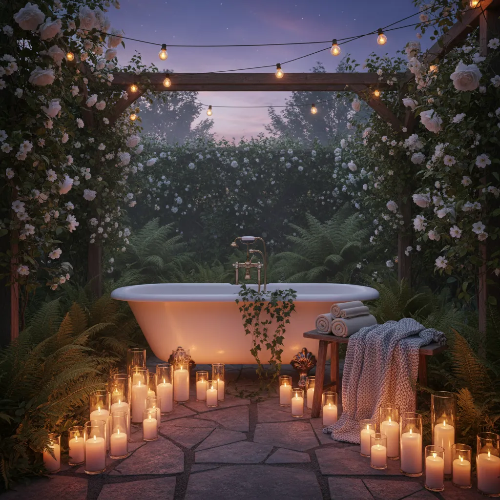 A clawfoot or freestanding tub can add a touch of vintage charm to your outdoor bathroom. Surround it with candles and soft textiles for a romantic retreat.