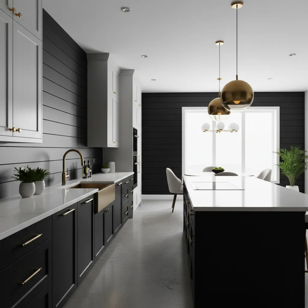Make a bold statement with a black shiplap backsplash. This dramatic choice adds depth and a touch of modern sophistication to your kitchen. When paired with light-colored countertops and metallic hardware like brass or copper, a black backsplash creates a stunning contrast that is both chic and cozy. It’s a daring home decor move that pays off in style.