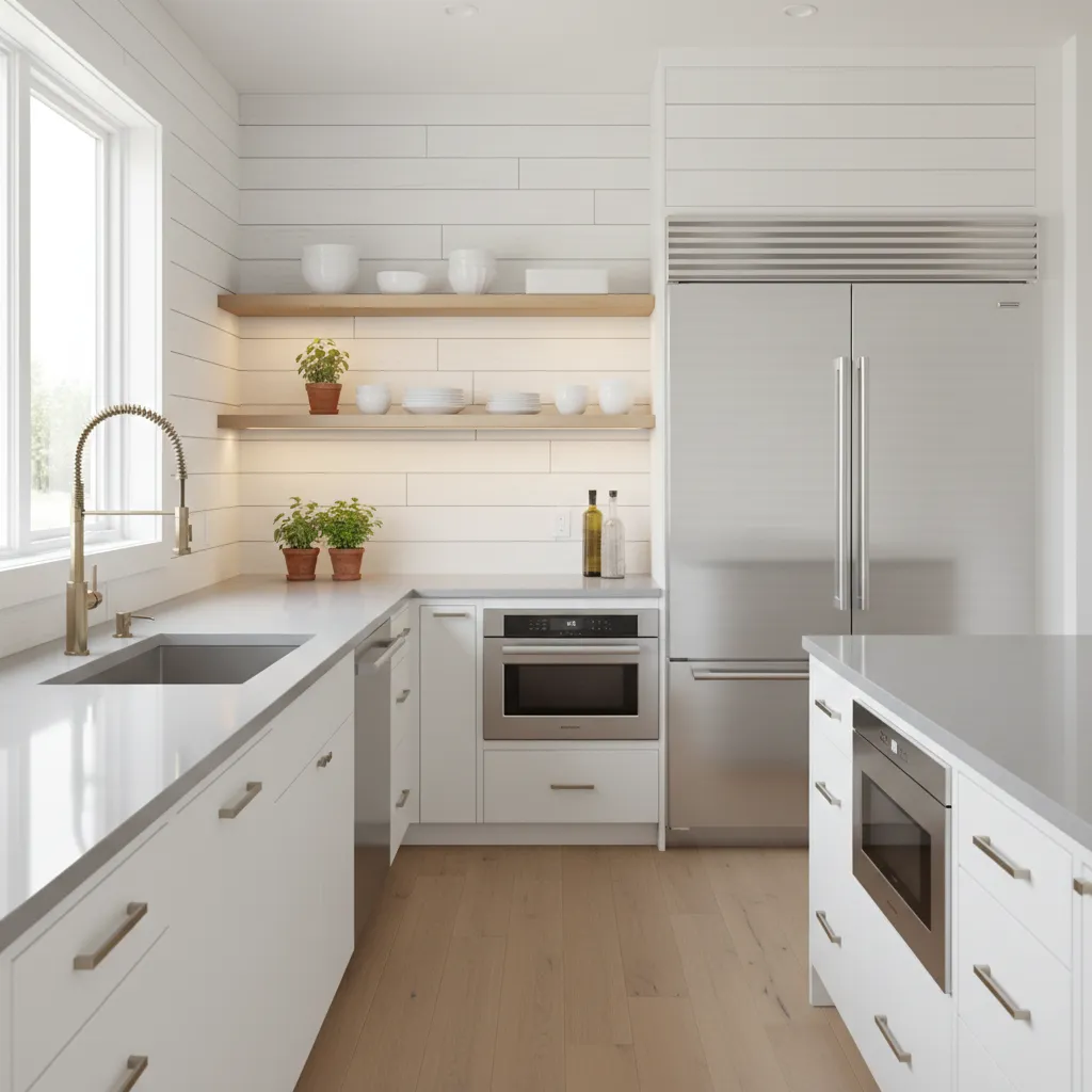 Yes, shiplap works well in small kitchens. Light colors, narrow boards, and minimalistic styling prevent the space from feeling crowded while adding visual interest and charm.