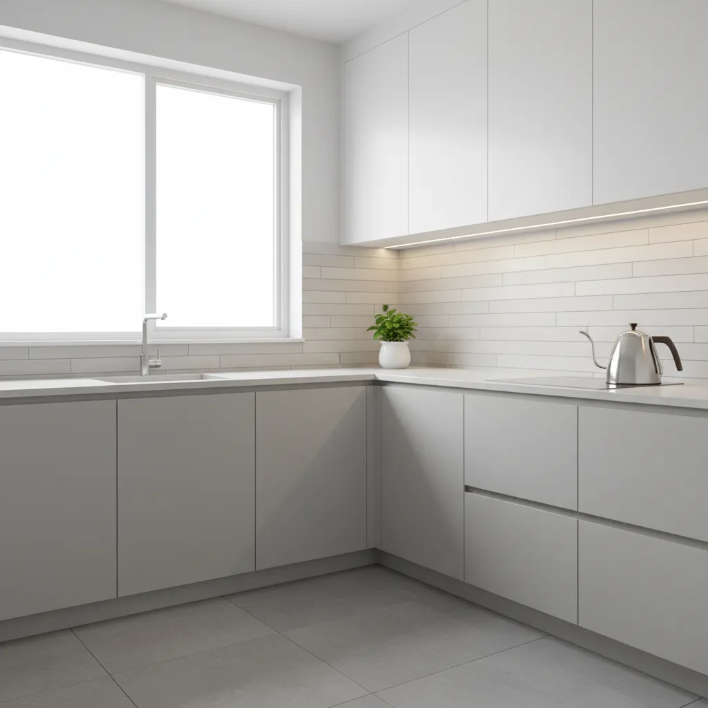 Clean regularly with a damp cloth and mild detergent. For painted or sealed surfaces, avoid abrasive cleaners. Periodically check for moisture or damage, especially around sinks and stoves, to keep it looking fresh.
