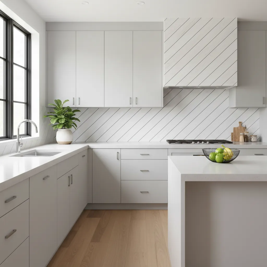 A herringbone pattern is a dynamic way to install your shiplap backsplash. This zigzag design adds visual interest and a sophisticated, custom-made feel to your kitchen. While it requires more precise cuts and a bit more planning, the result is a breathtaking focal point that elevates your entire space.