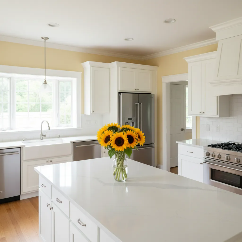 If painting the entire kitchen feels too daunting, an accent wall is the perfect compromise. A single wall painted in a warm, buttery yellow can define a space, such as a breakfast nook, and create depth and interest without being overpowering.