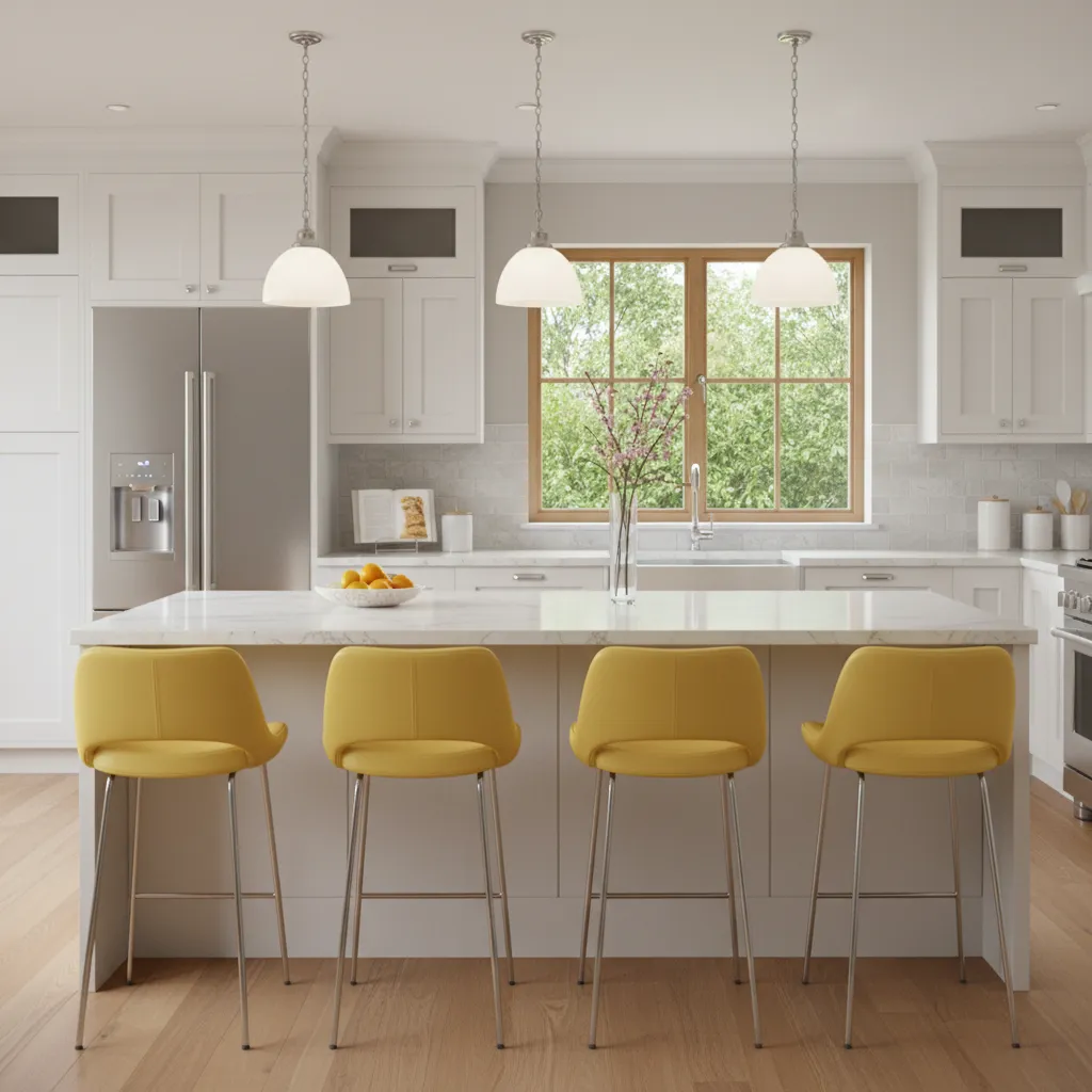 A set of vibrant yellow bar stools can add a playful and modern pop of color to your kitchen island or breakfast bar. They act as functional art, providing seating while drawing the eye and creating a cheerful focal point.