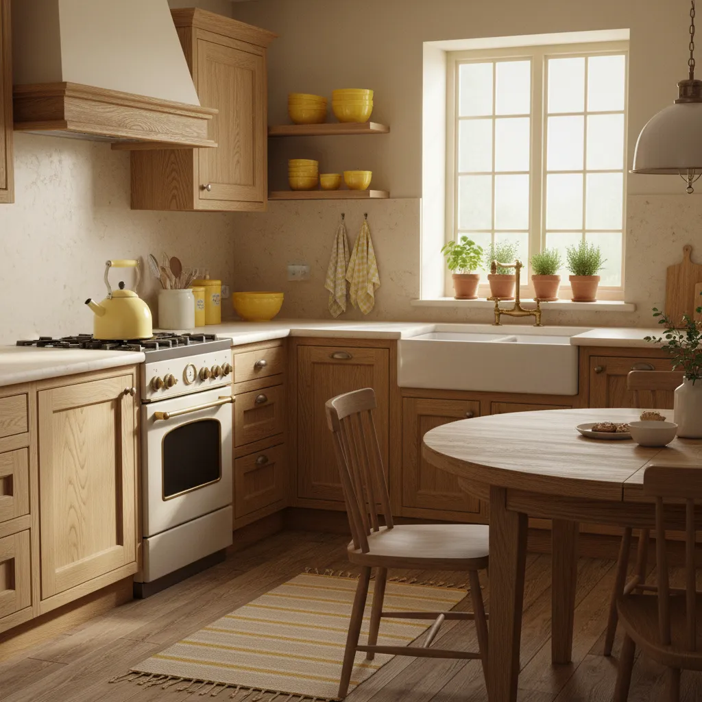 Combine yellow with natural wood for a warm, organic, and inviting kitchen. The warmth of wood grains—from light oak to rich walnut—complements the sunny nature of yellow. This pairing is perfect for rustic, farmhouse, or bohemian home decor styles.