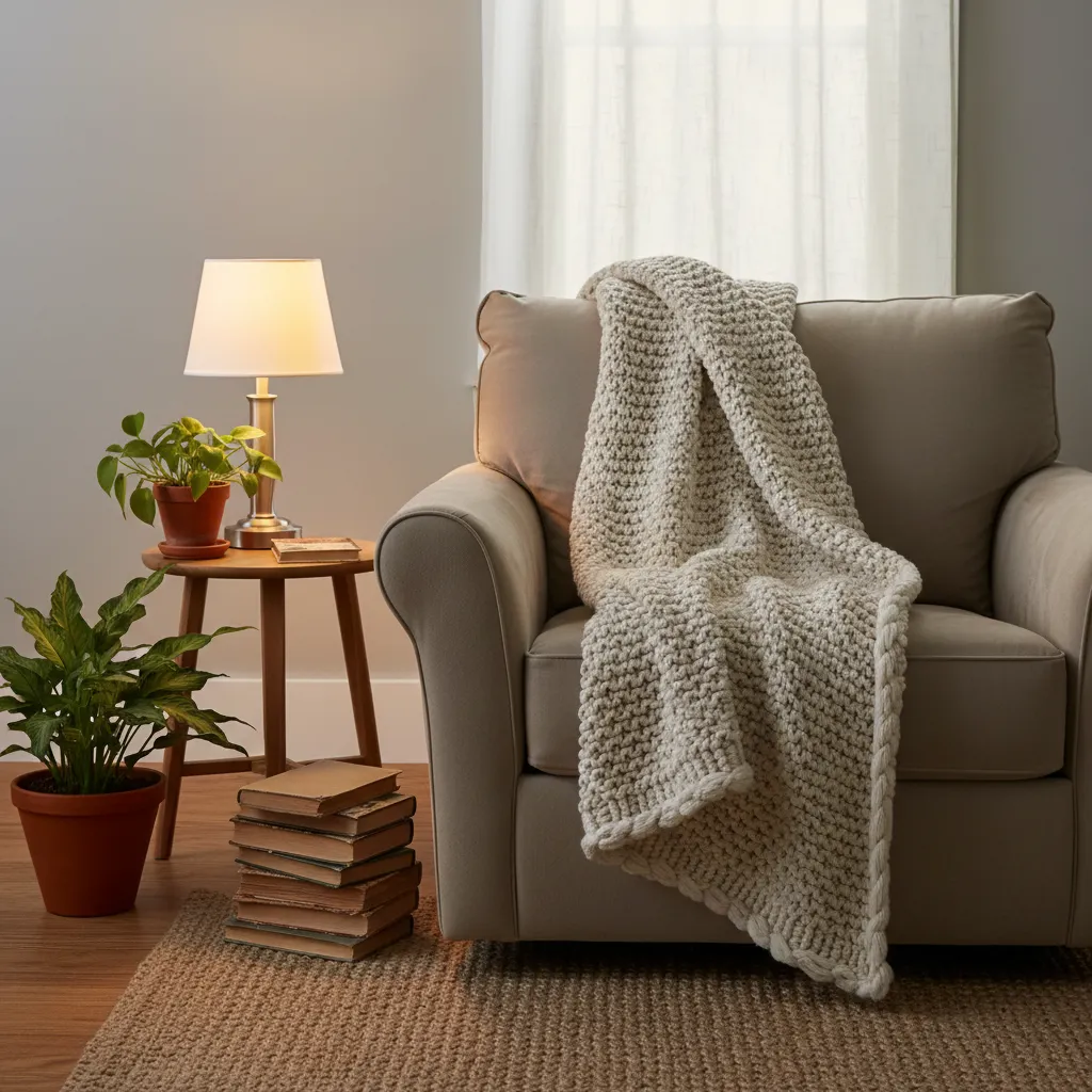 Nothing says cozy quite like a chunky knit blanket. The oversized yarn creates deep shadows and highlights, making it a highly visual texture. Drape one casually over the arm of a reading chair or across the foot of your bed. It instantly softens the room and invites you to sit down and relax.