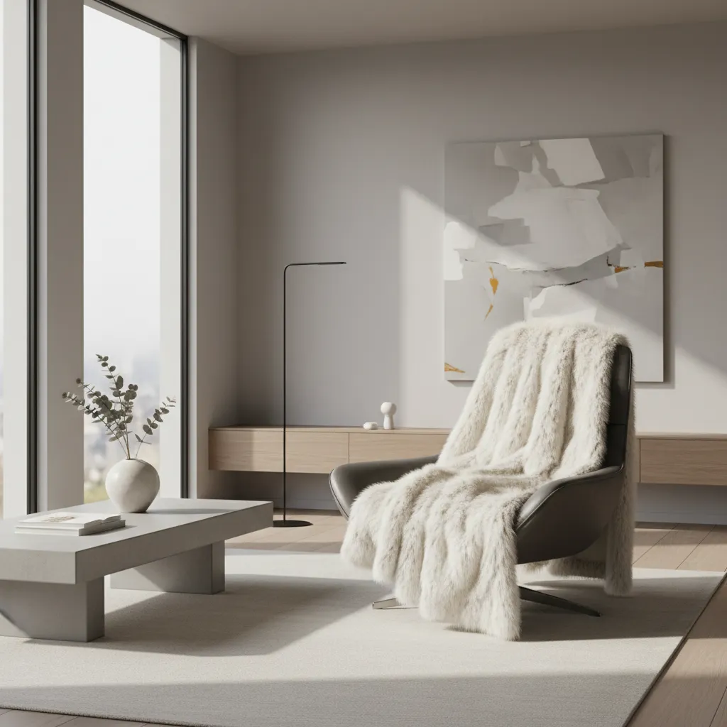 Faux fur adds a glamorous, incredibly soft texture to any space. It works exceptionally well in modern or minimalist rooms that need a touch of warmth. Toss a small sheepskin throw over a hard dining chair or place a faux fur pillow on a sleek leather armchair to soften the look.