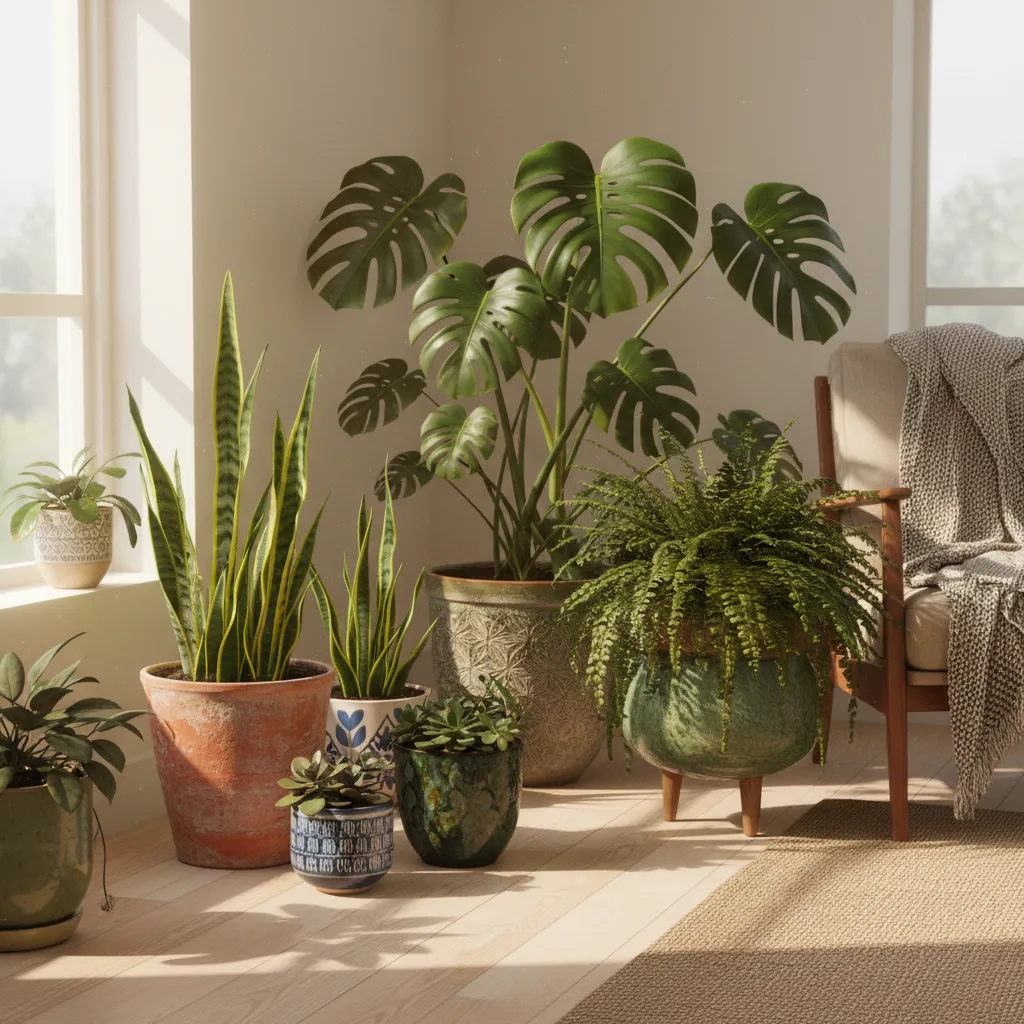 Houseplants do more than just clean the air. They introduce organic shapes and textures that you cannot replicate with manufactured goods. A waxy monstera leaf, a delicate fern, or a spiky snake plant breaks up the rigid lines of a room. Pair them with textured ceramic or terracotta pots for an extra layer of visual interest.