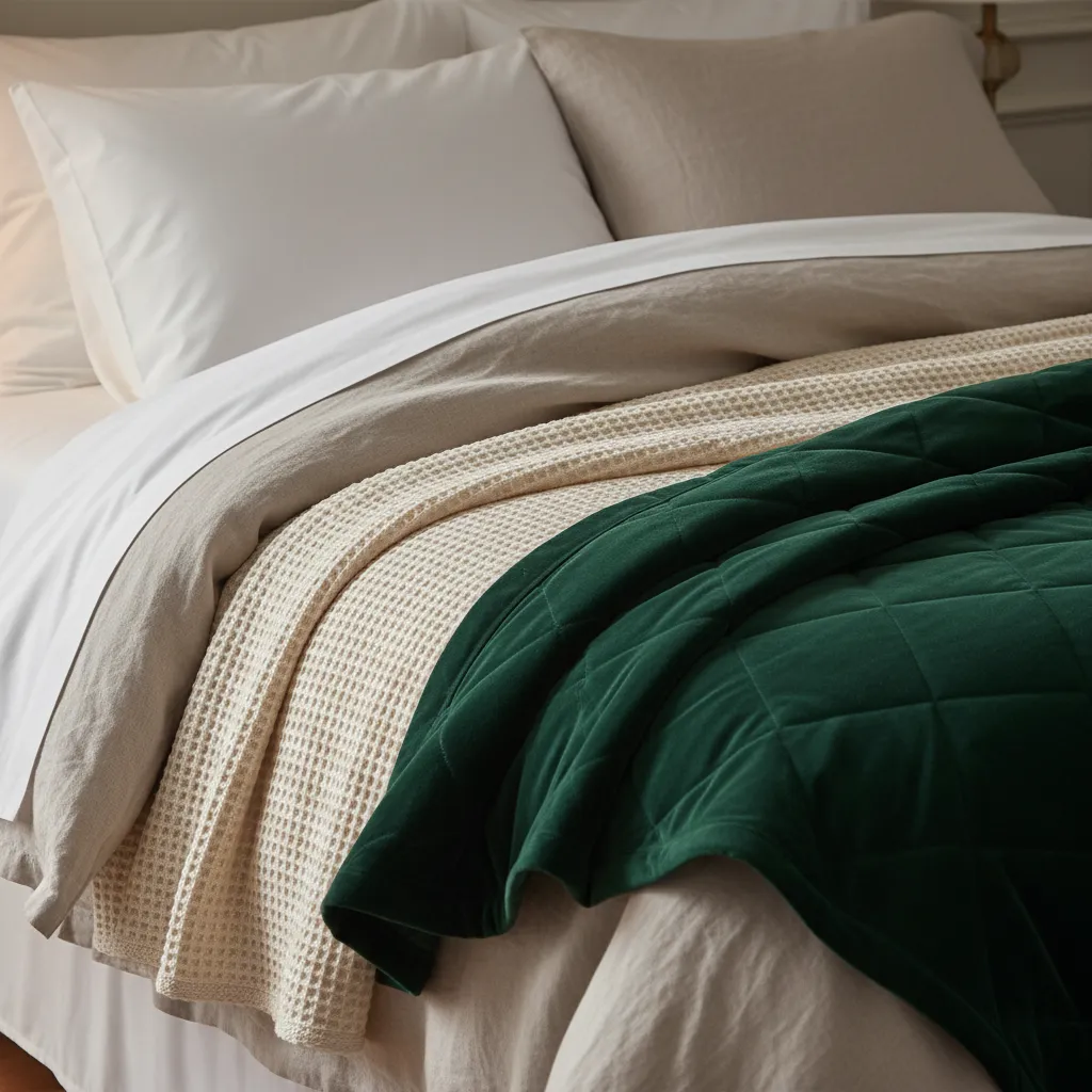 A high-end bed looks plush and inviting. Achieve this by layering different bedding materials. Start with crisp cotton or smooth silk sheets. Add a waffle-knit blanket, top it with a heavy linen duvet, and finish with a quilted velvet throw at the foot of the bed. This creates a cloud-like, luxurious sleeping space.