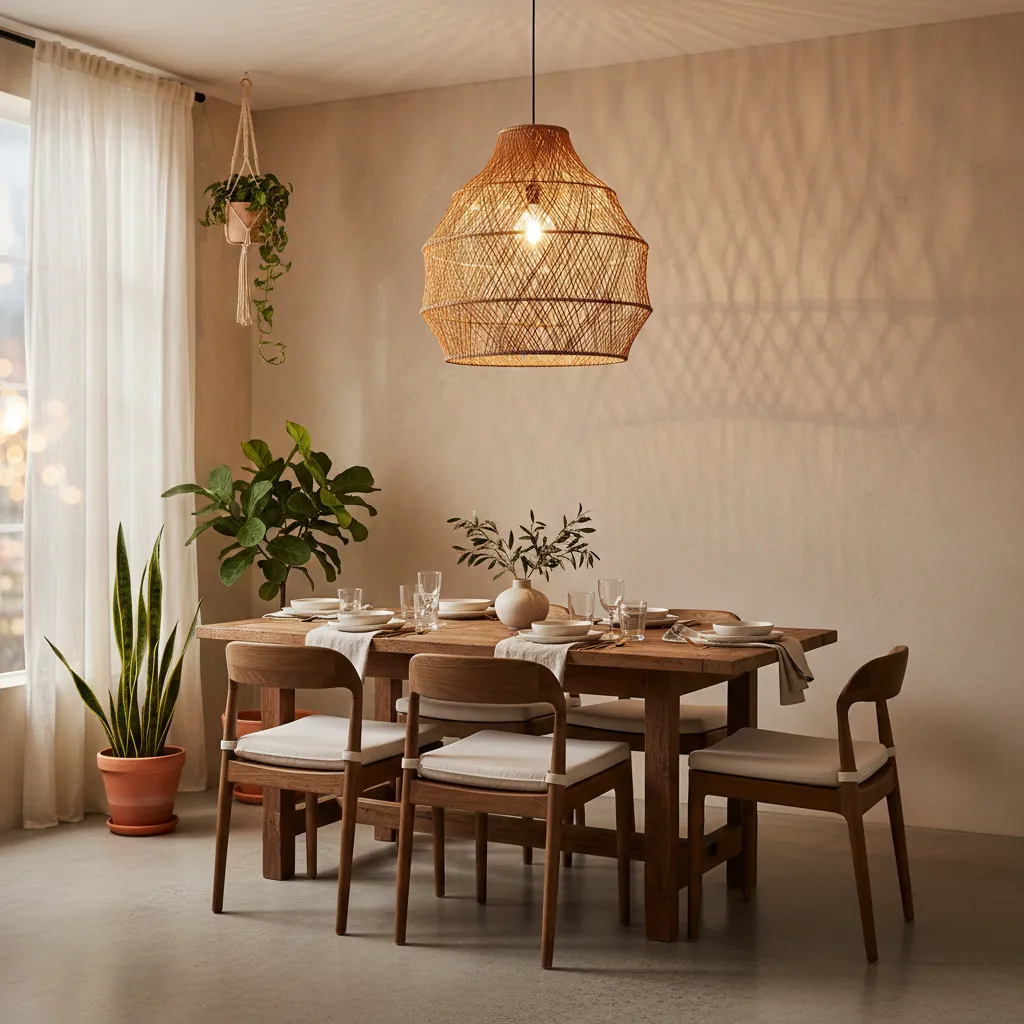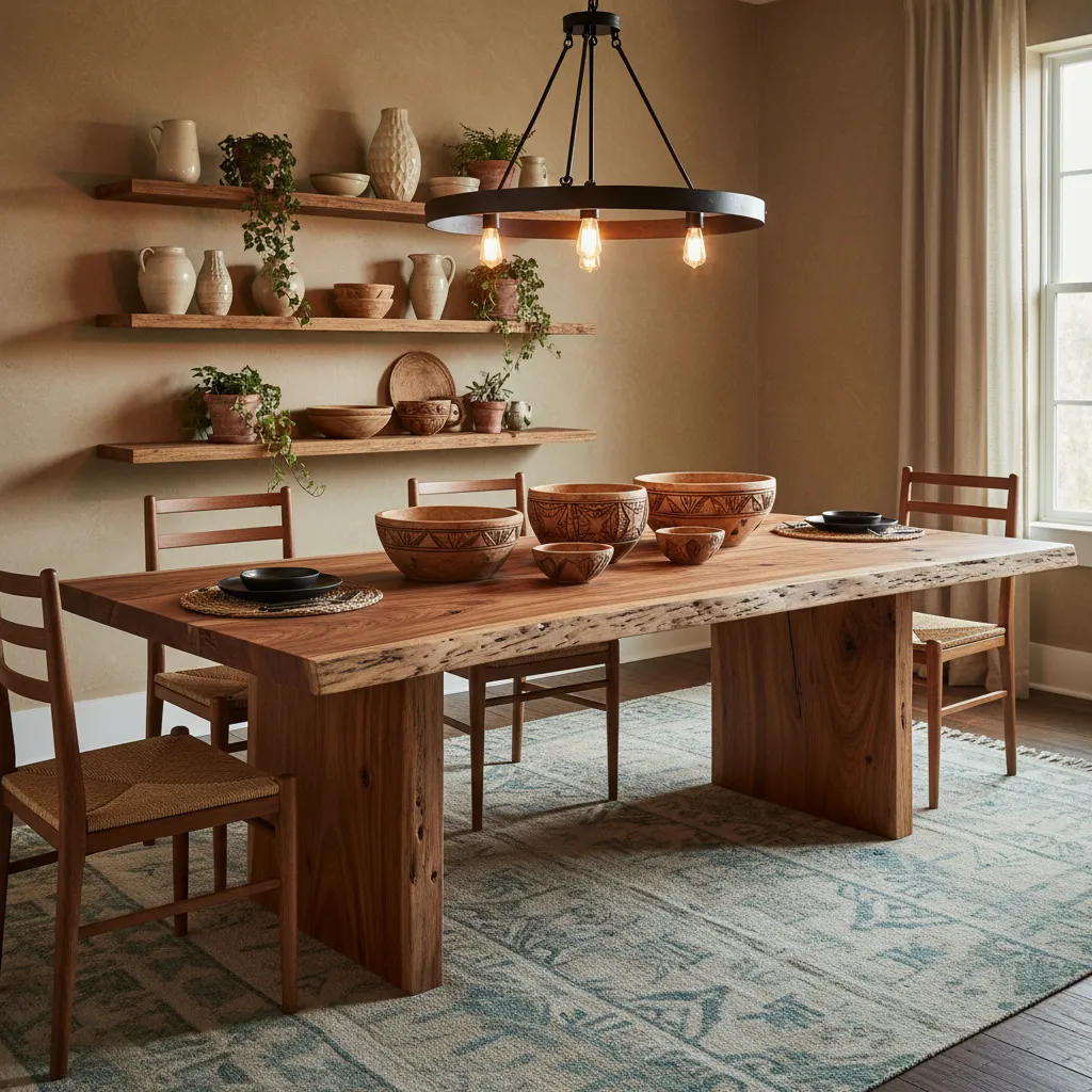 Wood brings warmth and a grounding energy to a room. Look for pieces that show off their natural grain. A raw-edge dining table, carved wooden bowls, or floating timber shelves add necessary roughness. You can even use reclaimed wood on the walls or ceiling to dramatically shift the room’s atmosphere.