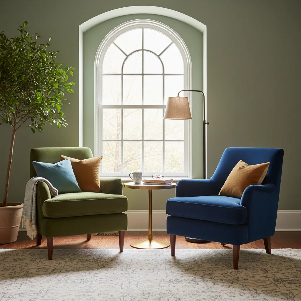 Rich, muted tones like deep blues, emerald greens, soft grays, creams, and warm neutrals create a sophisticated atmosphere. Metallic accents in gold, silver, or brass can also add a touch of glamour.