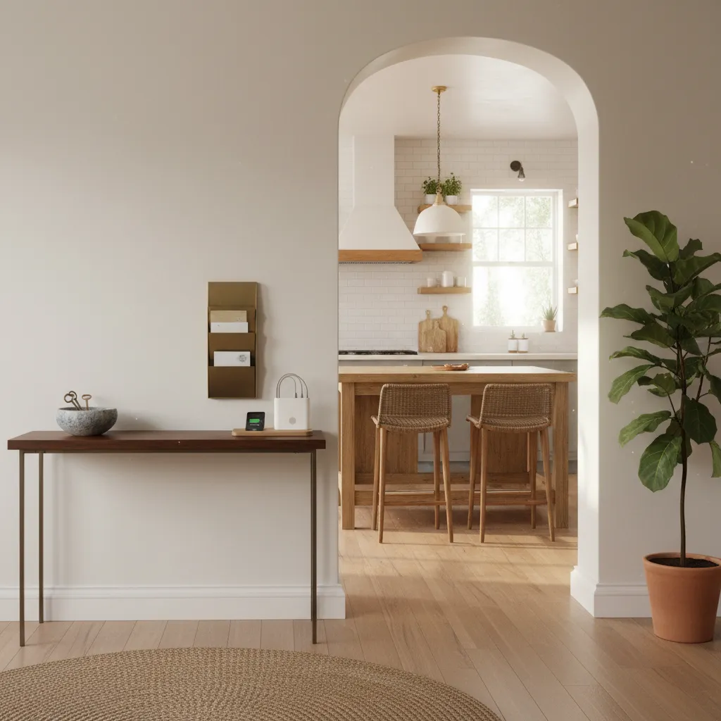 A major source of clutter is the stuff we bring in the door every day: keys, mail, bags, and phones. Without a designated spot, these items end up on the kitchen counter. Create a small, dedicated “drop zone” near your entrance with a small console table, a bowl for keys, and a charging station.