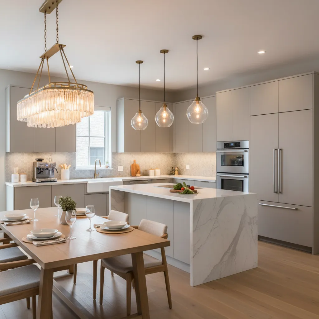 - Task Lighting: This is your functional light. Install under-cabinet lighting to illuminate your countertops for food prep. Place pendant lights over the island or a chandelier over the dining table.