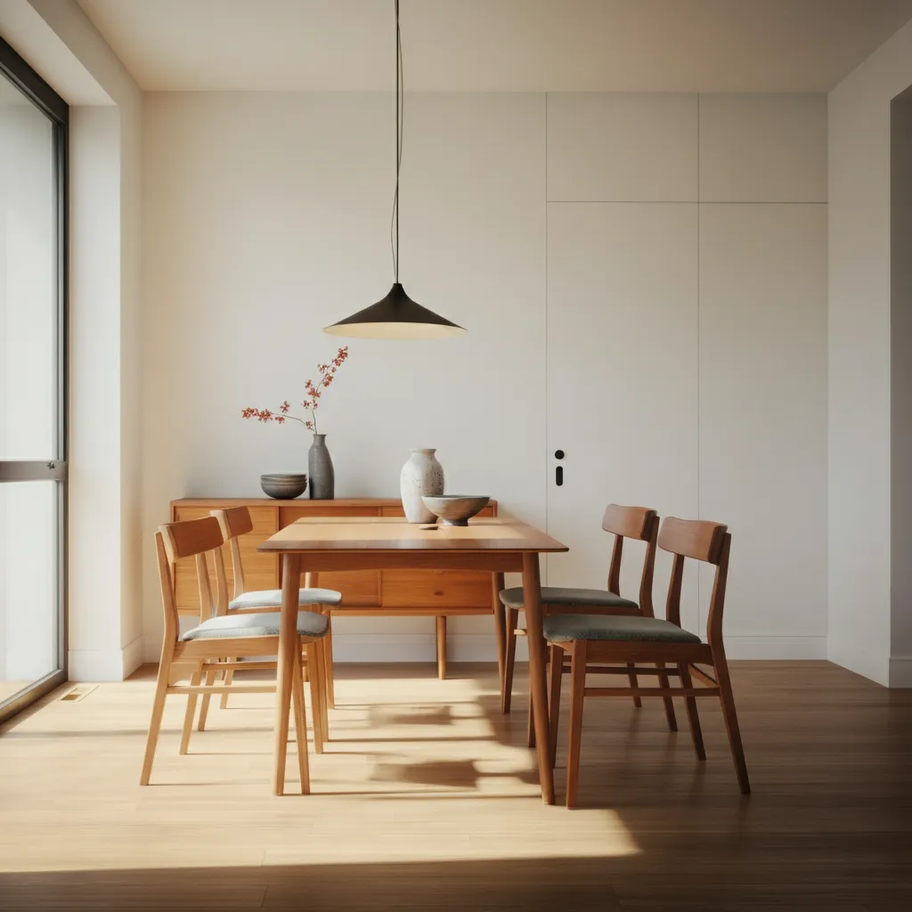 Every great design starts with the right core elements. For a mid-century modern dining room, this means focusing on clean lines, natural materials, and an uncluttered feel.