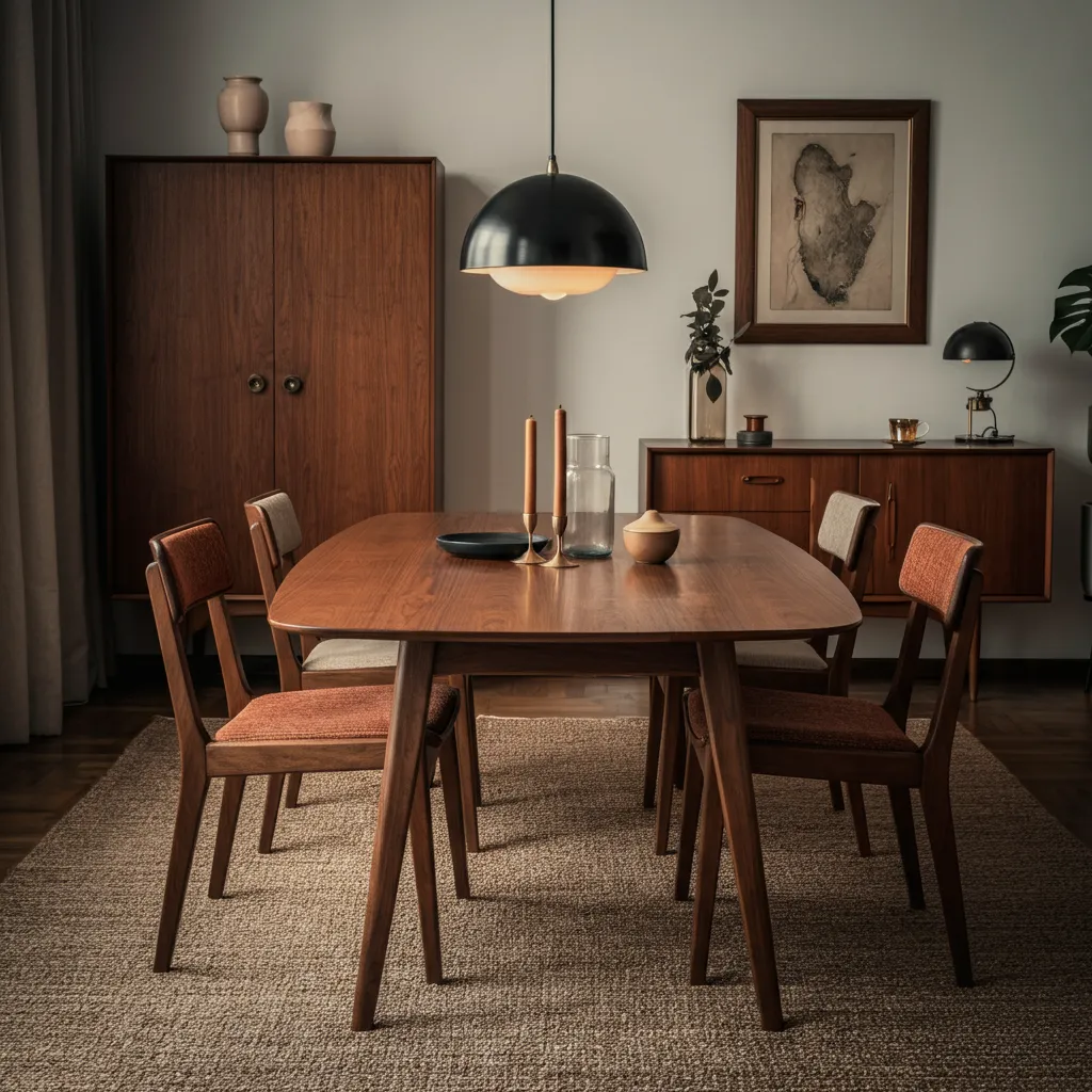 What type of furniture suits a mid-century modern dining room?