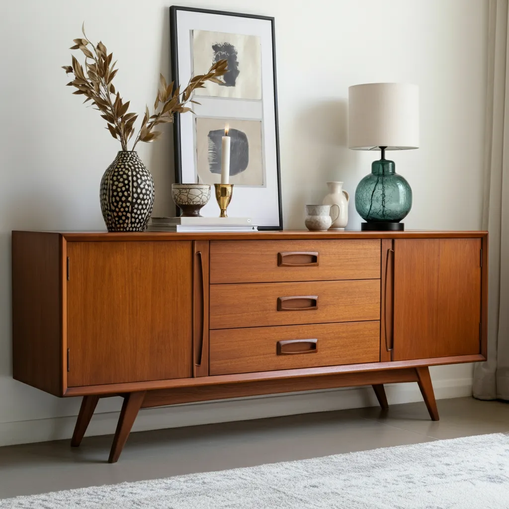 A long, low sideboard is a hallmark of mid-century design. It provides essential storage for dinnerware and linens while offering a surface for display. Look for pieces with tapered legs, minimalist hardware, and beautiful wood grain.