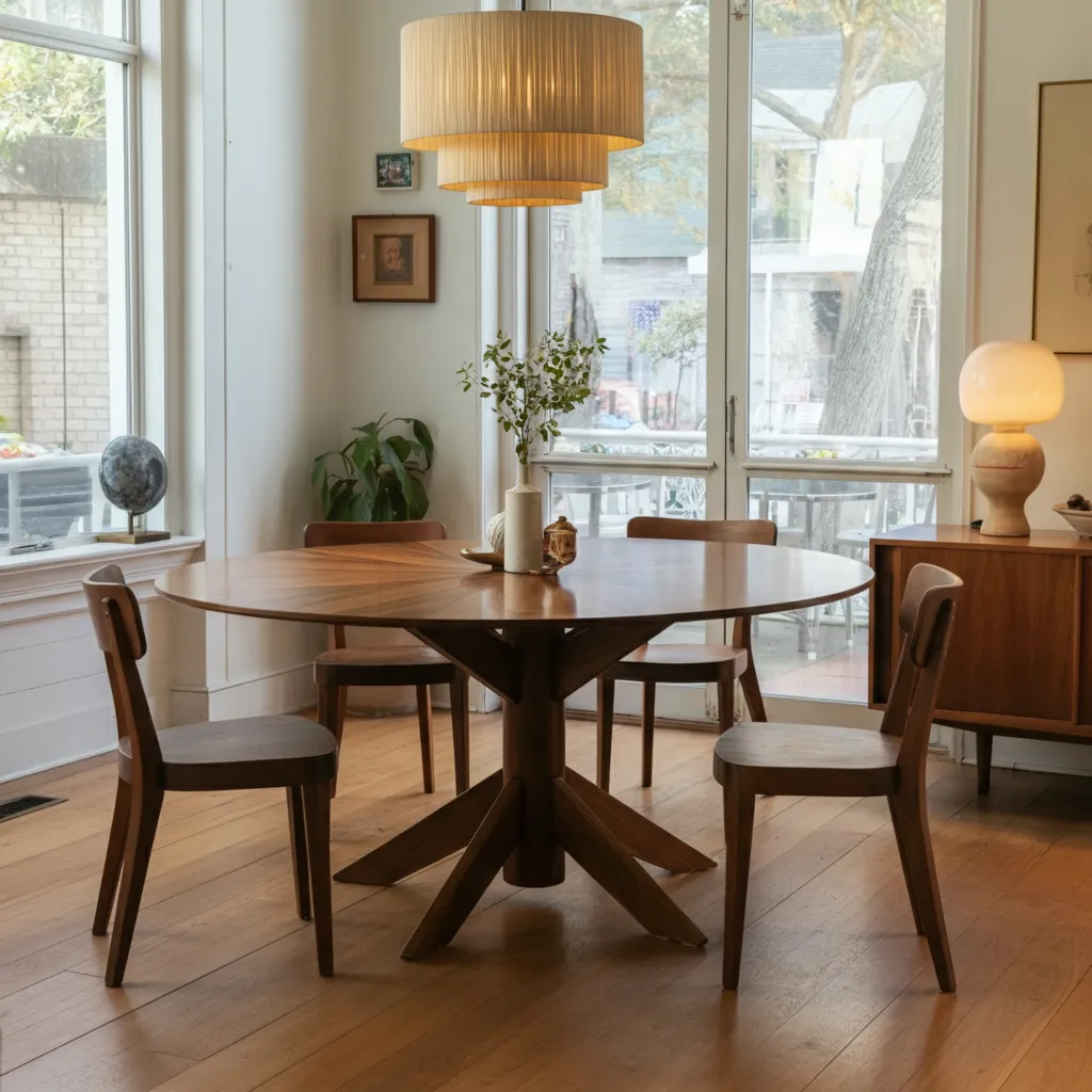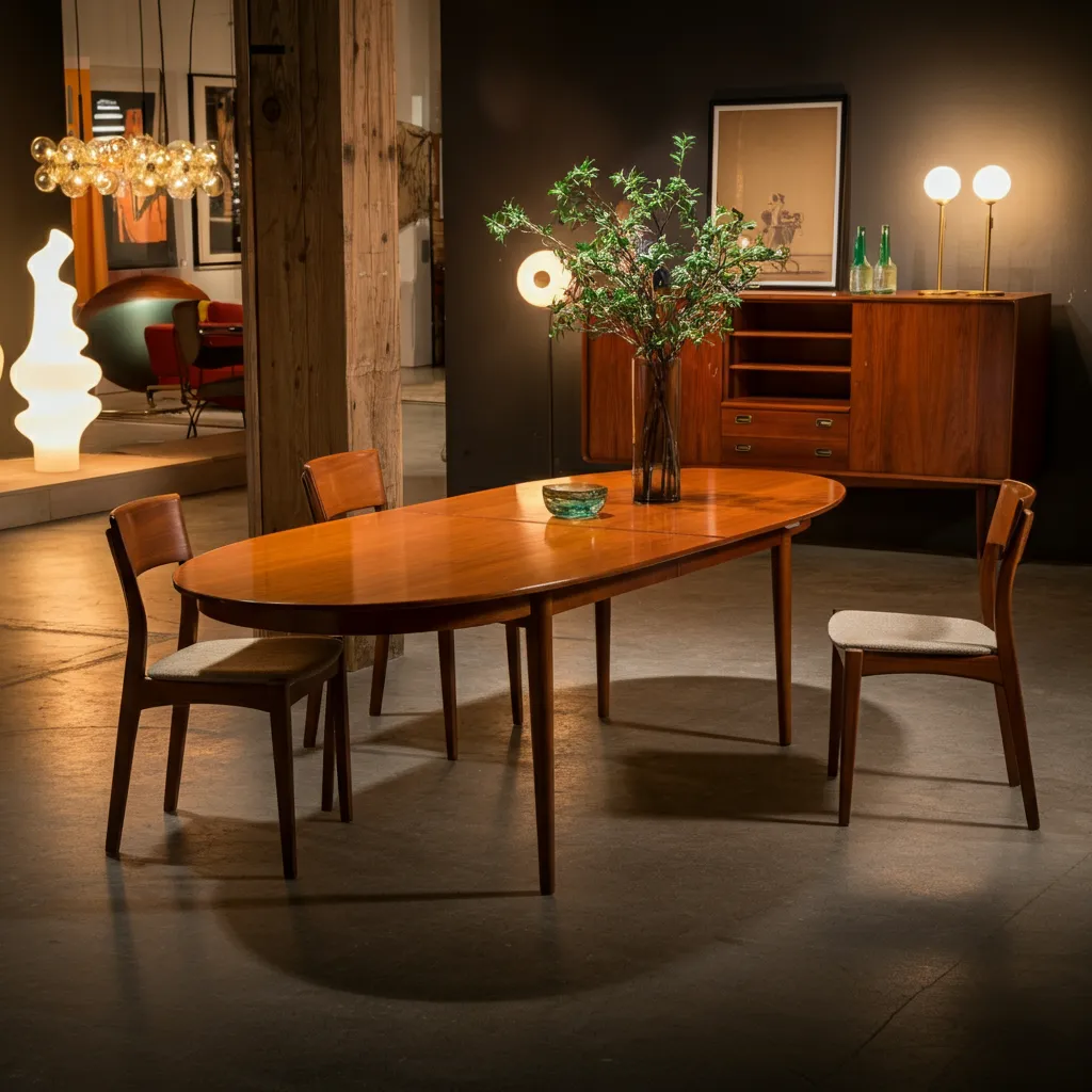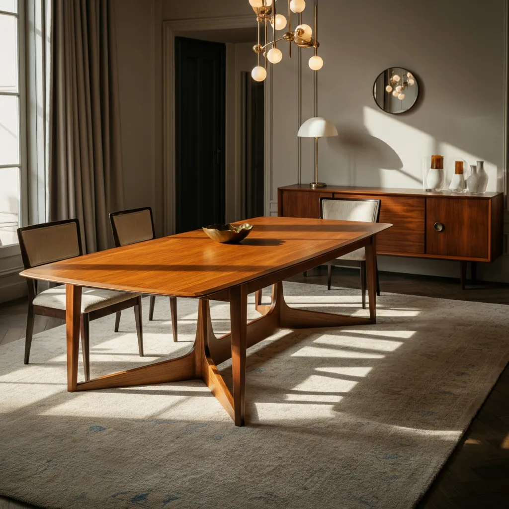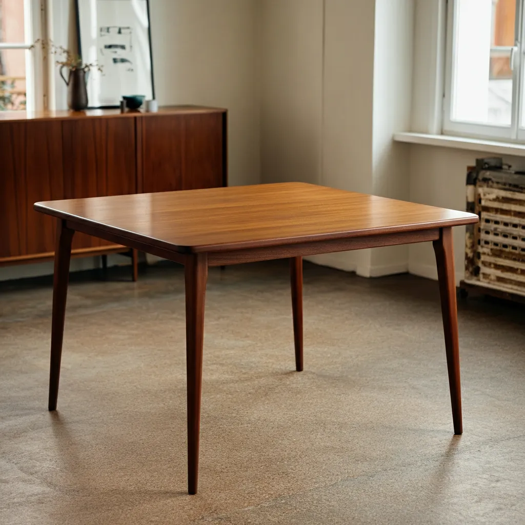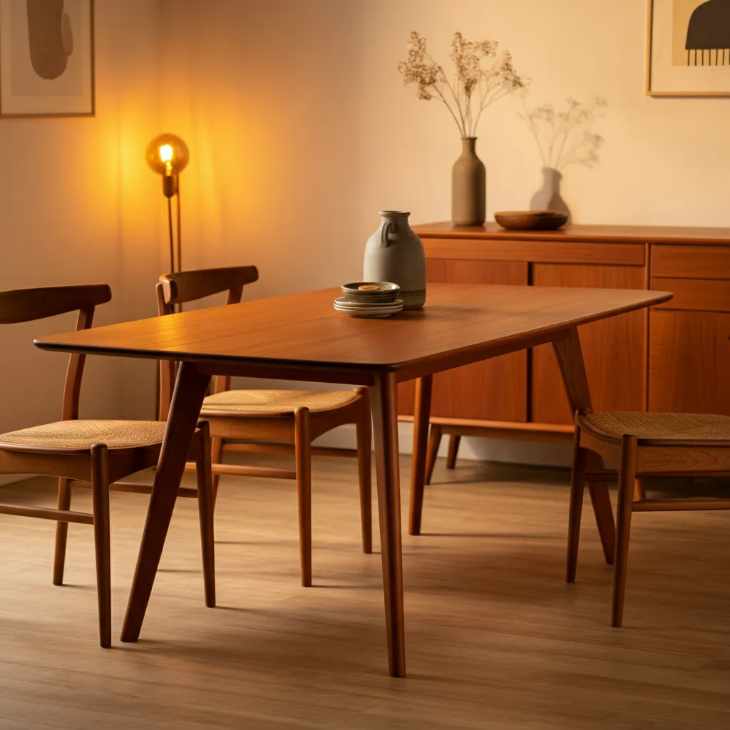 A classic teak table with four gracefully splayed legs is the quintessential mid-century piece. It’s durable, beautiful, and perfect for daily meals.