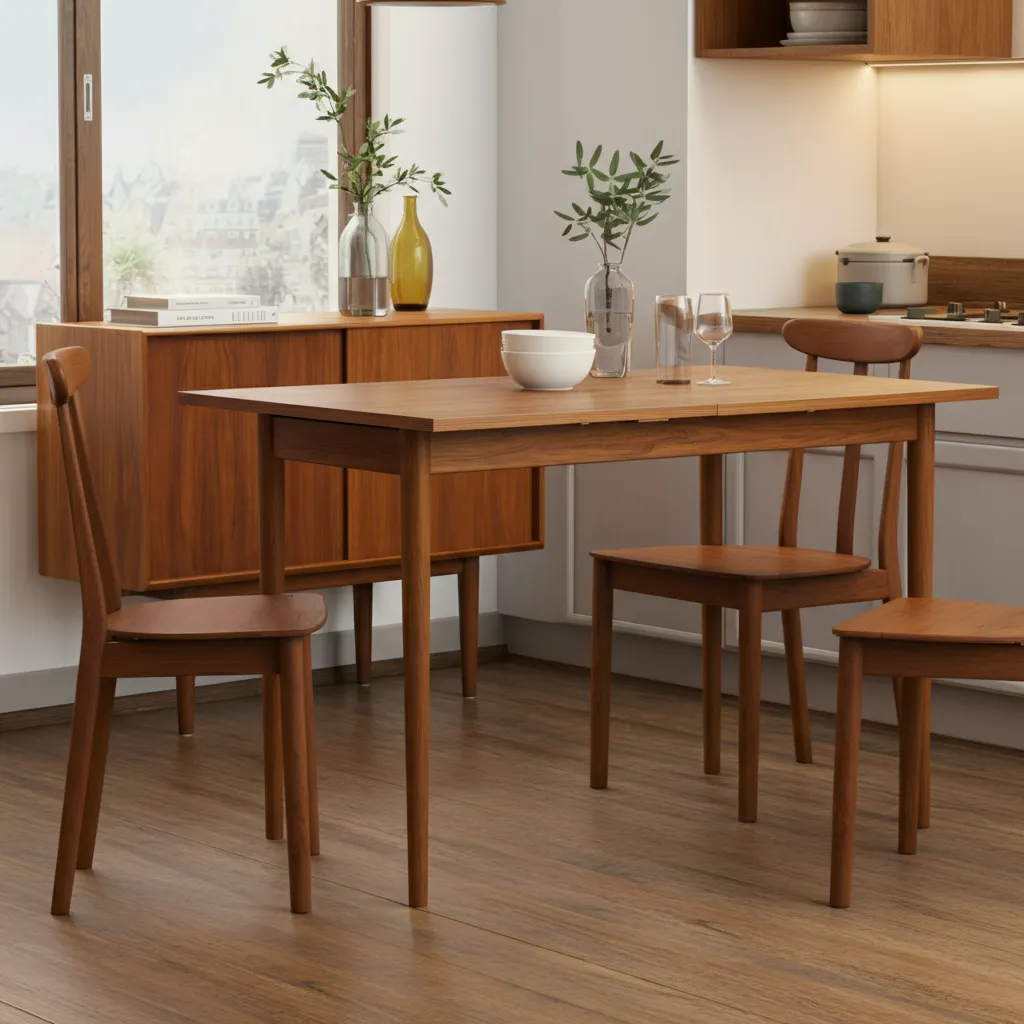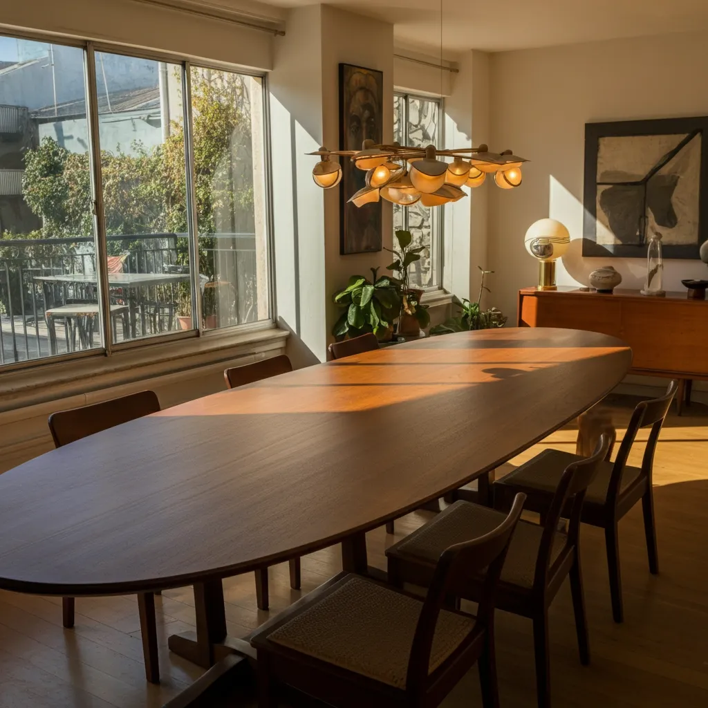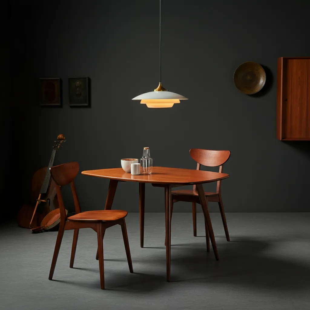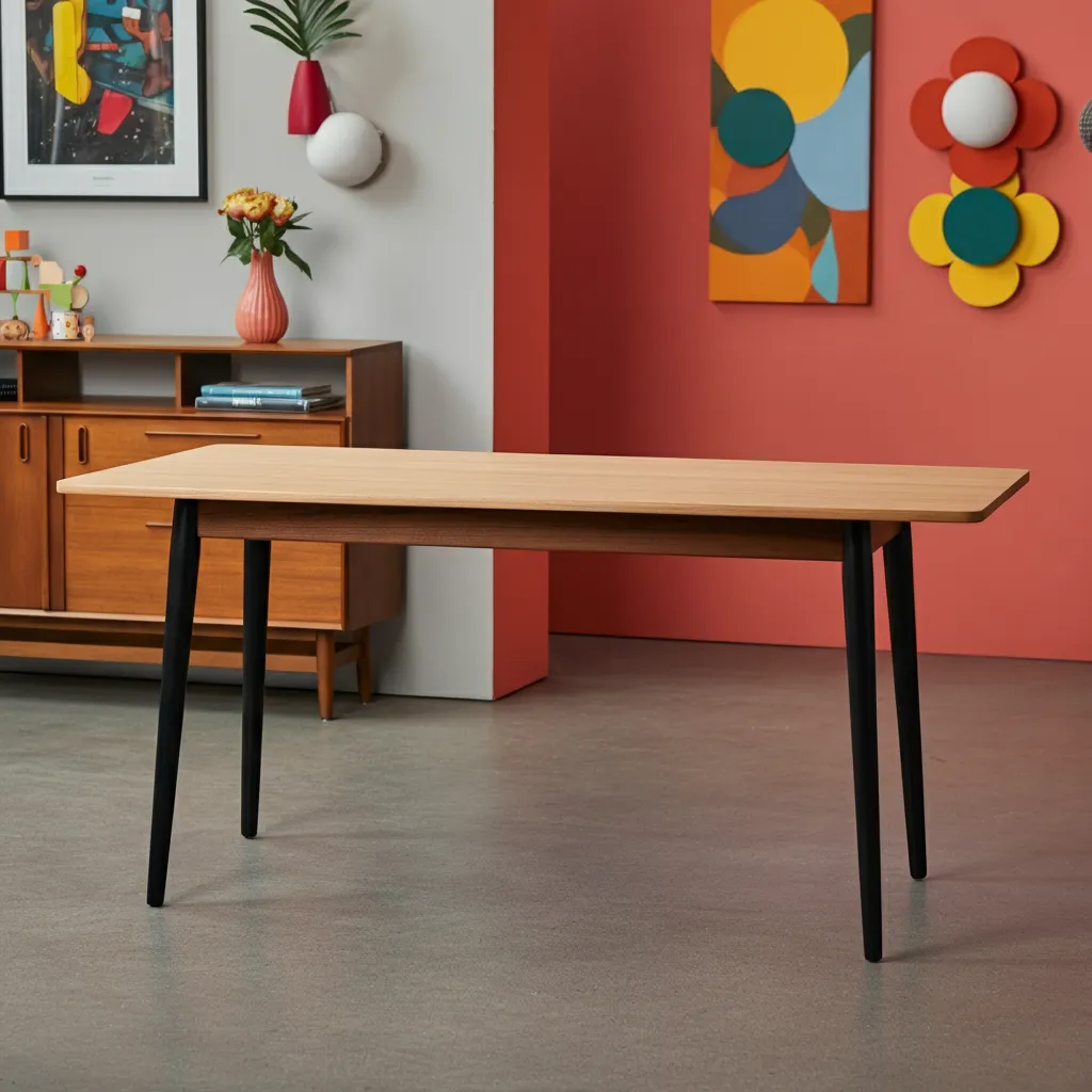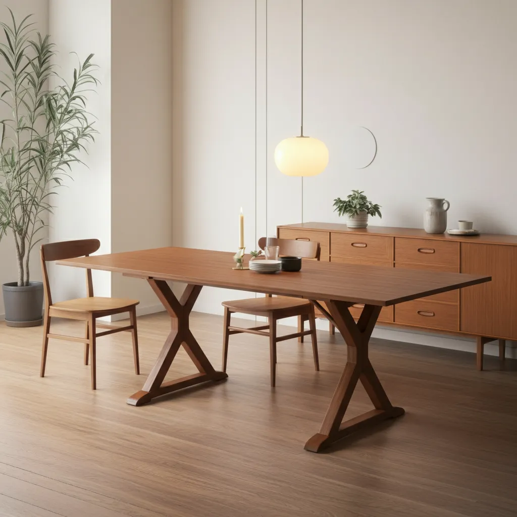A classic teak table with four gracefully splayed legs is the quintessential mid-century piece. It’s durable, beautiful, and perfect for daily meals.