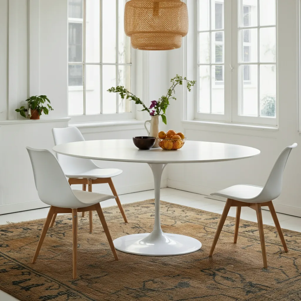 Measure your dining area first, then ensure there’s at least 36 inches (about 91 cm) of clearance around the table for chairs and movement. Round and oval tables can be especially space‑efficient in smaller rooms.