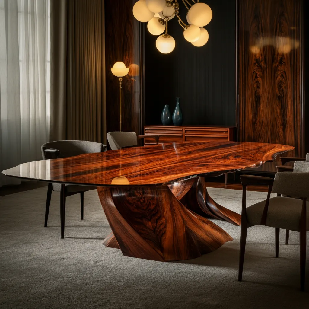 For a touch of luxury, a rosewood dining table with its dramatic grain and reddish hues is an unforgettable choice.