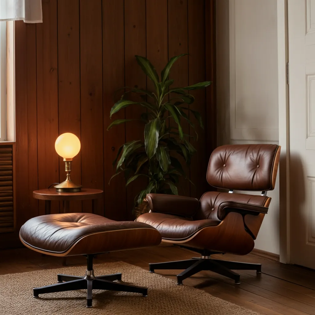 You don’t need an original (and expensive) Eames chair to get the look. A leather accent chair with a molded plywood shell adds instant warmth and sophistication. It’s the perfect spot for reading on a rainy Sunday.