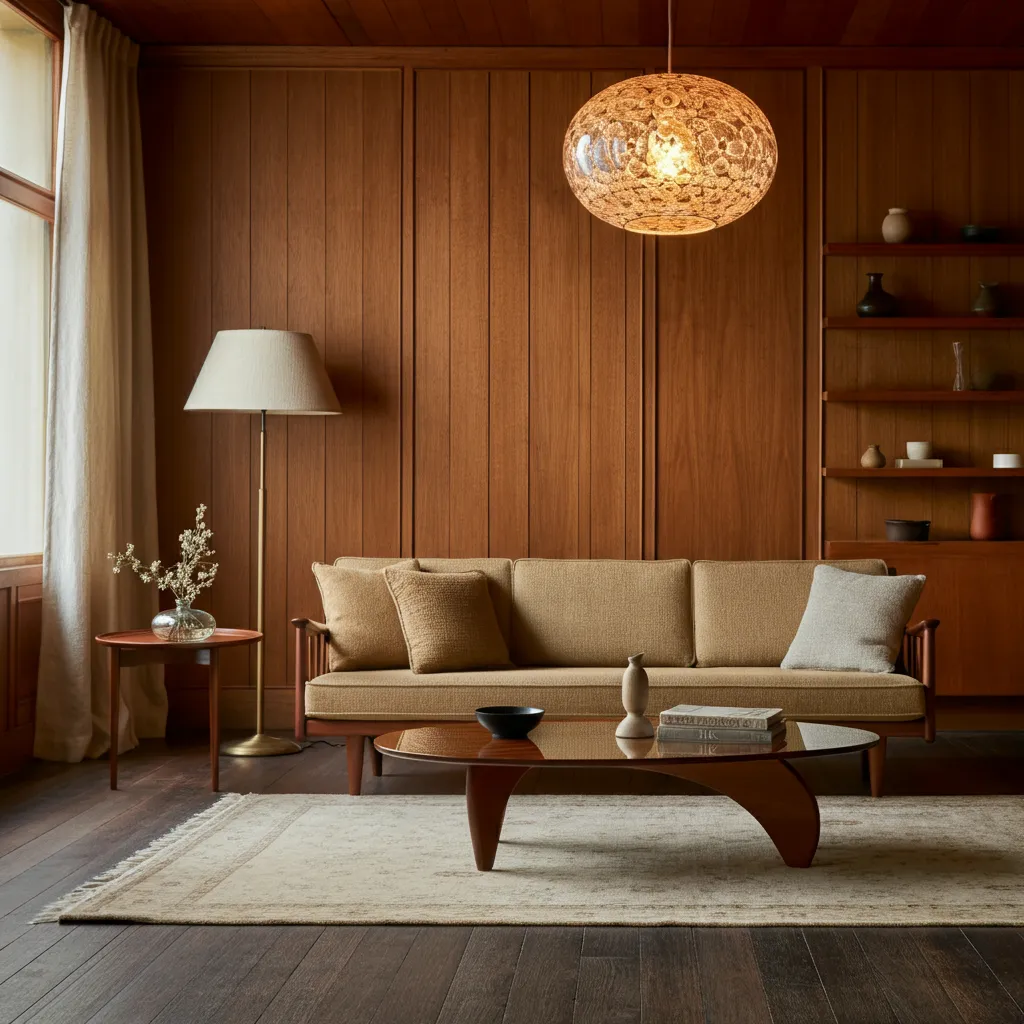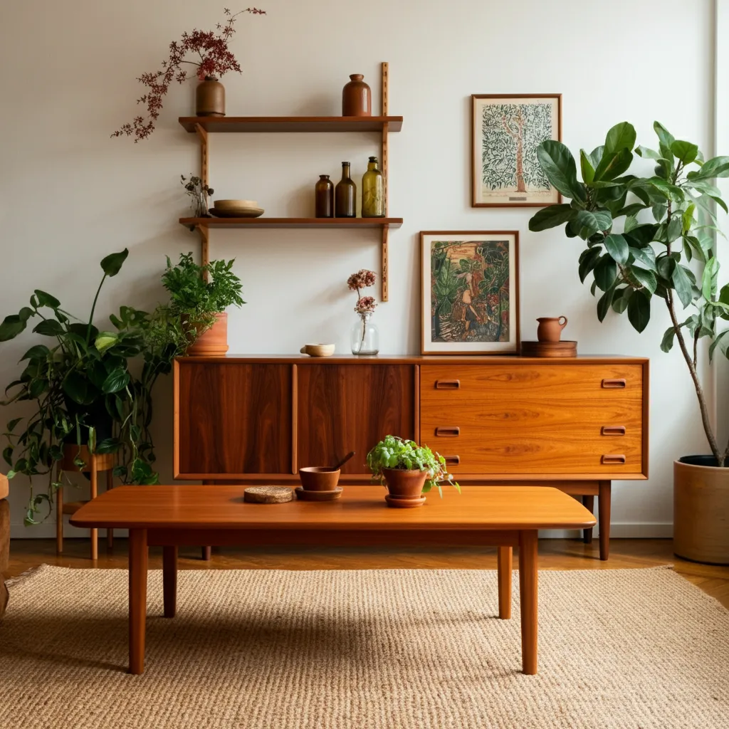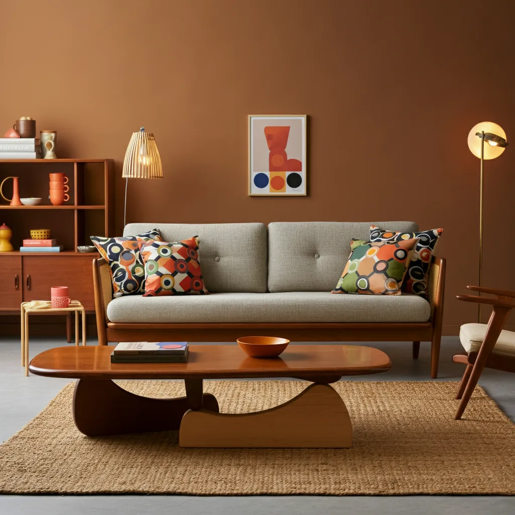 Teak, walnut, and rosewood are the holy trinity of mid-century timber. Don’t be afraid to mix wood tones, but try to keep a consistent undertone (usually warm and reddish-orange). These natural materials ground the space and make it feel earthy.