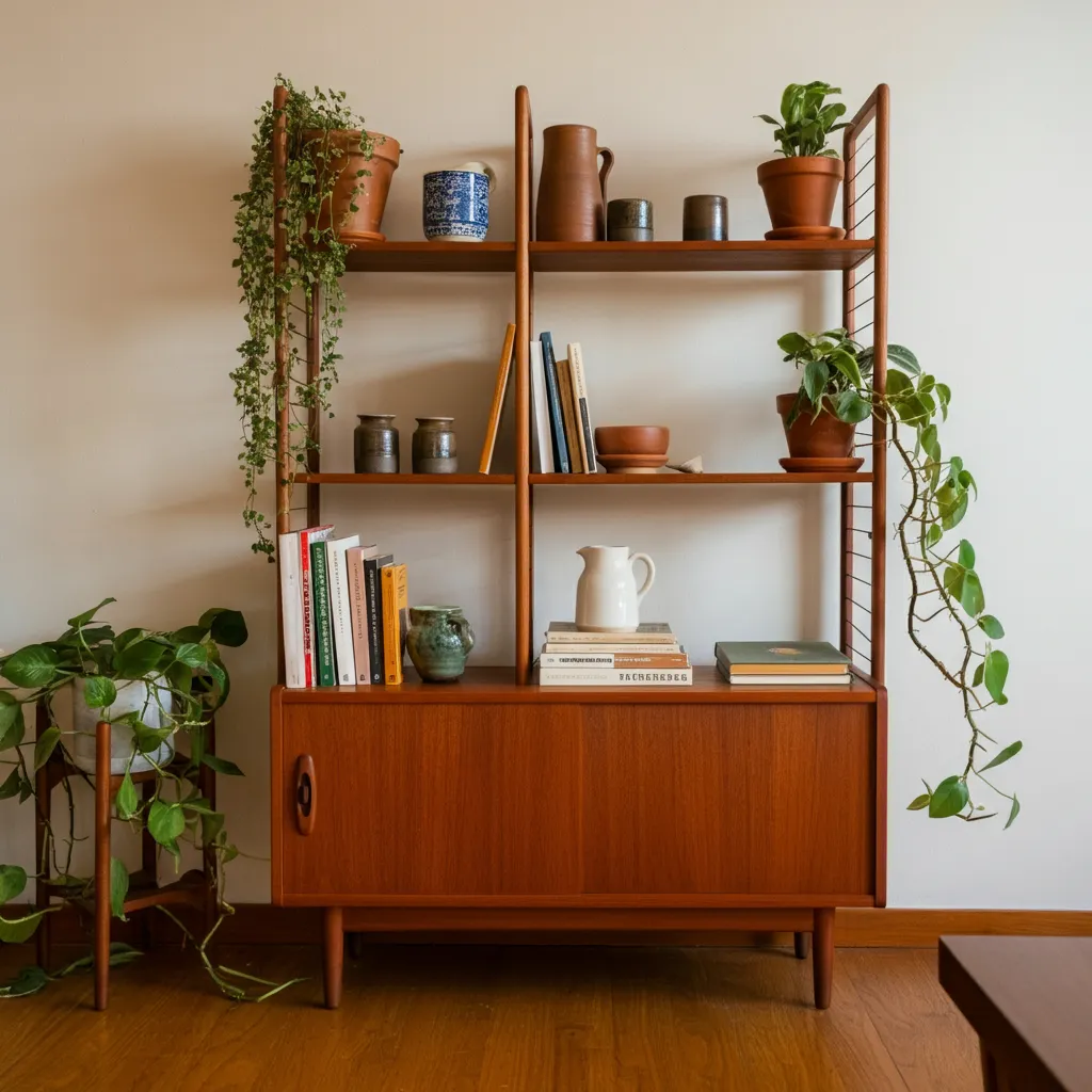 In the 1950s, storage was meant to be seen. Install a teak or walnut modular shelving unit. It serves a dual purpose: practical storage for your books and records, and a beautiful display for your favorite home decor pieces.