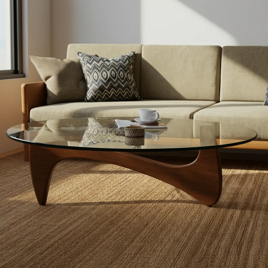 Ditch the heavy, boxy tables. Opt for a kidney-shaped or glass-topped coffee table with a Noguchi-inspired base. The organic curves soften the straight architectural lines of a room, adding a fluid, natural feel to your layout.