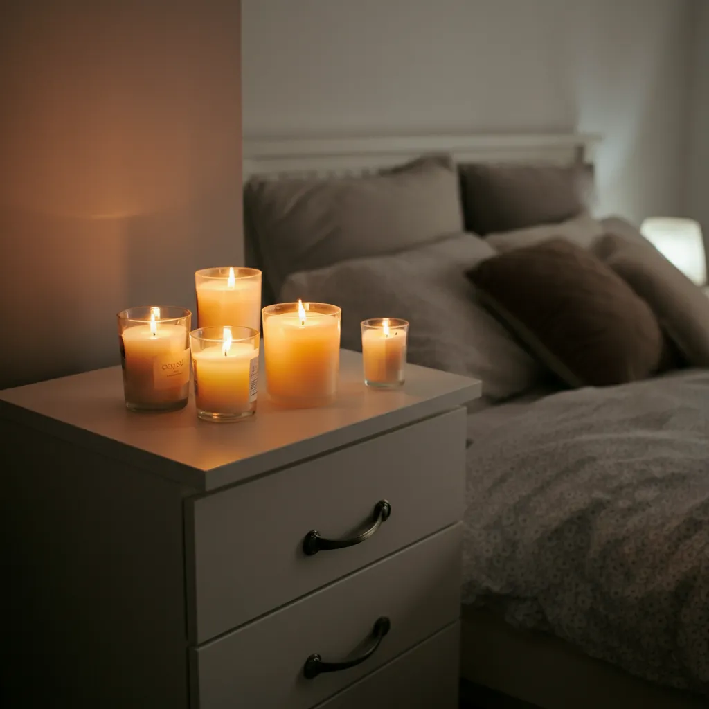 Nothing says romance like the soft, flickering light of candles. Group them safely on a dresser or nightstand. For a worry-free option, use high-quality flameless LED candles that provide the same warm glow.