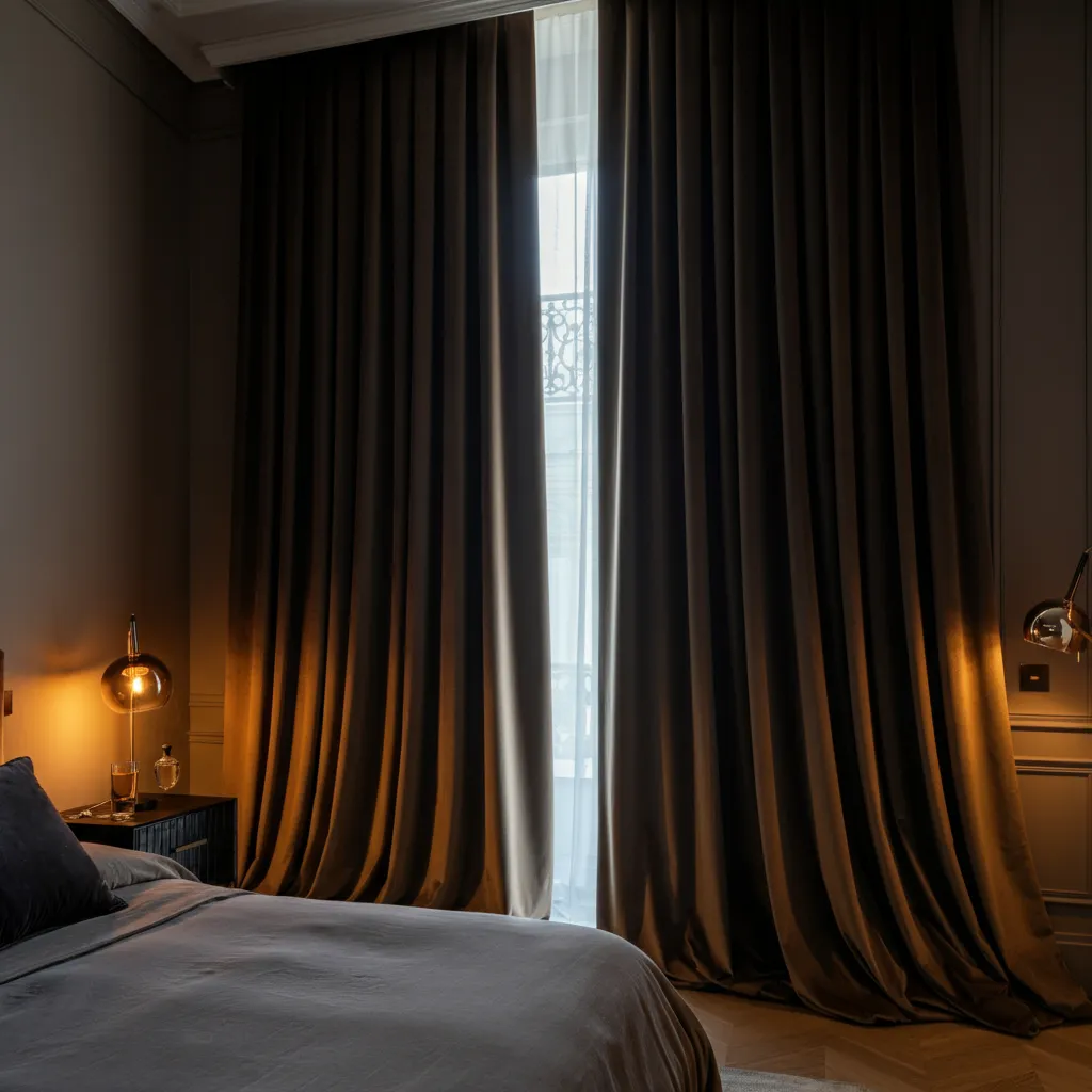 Frame your windows with heavy curtains made from materials like velvet or lined linen. They block out light, provide privacy, and add a sense of drama and enclosure. Mount the curtain rod high and wide to make the window appear larger.