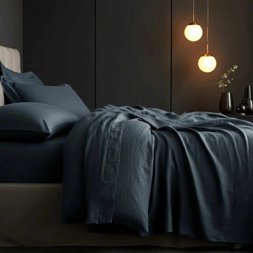 Invest in bedding that feels as good as it looks. Soft linens, smooth sateen, or breathable cotton in a deep, moody hue will make getting into bed a true pleasure.