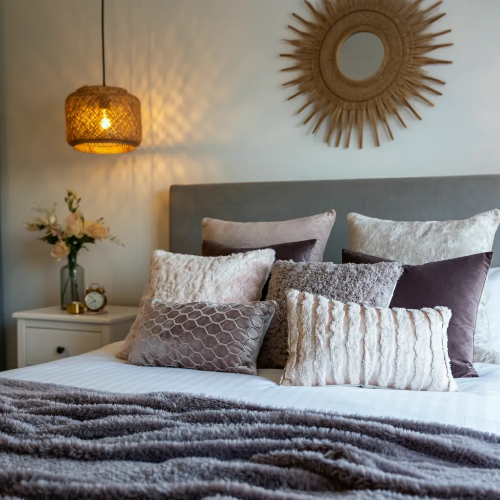 Use layered bedding, plush rugs, ambient lamps or string lights, and textured curtains. Adding candles, soft throws, and decorative pillows enhances warmth and intimacy.