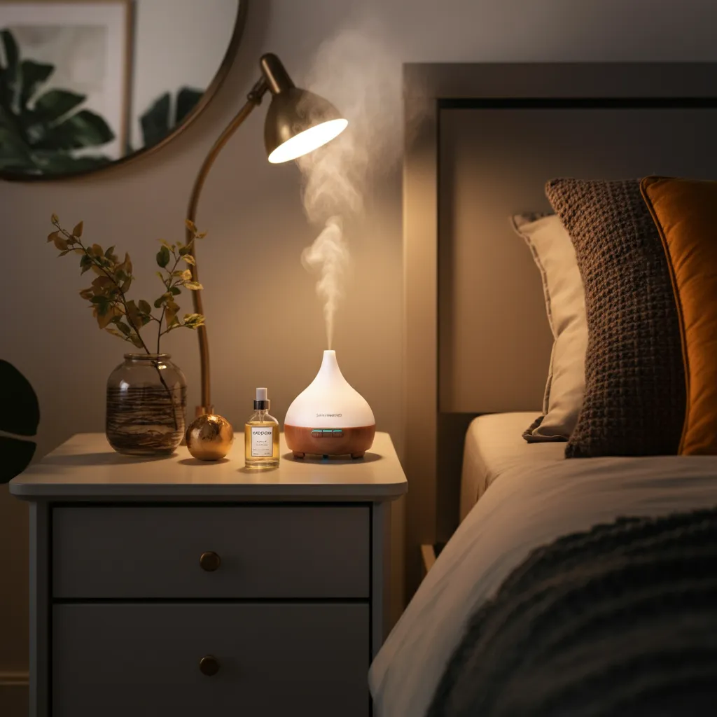 Engage all the senses by incorporating a signature scent. A diffuser with essential oils like sandalwood or jasmine, or a high-quality scented candle, can complete the romantic ambiance.