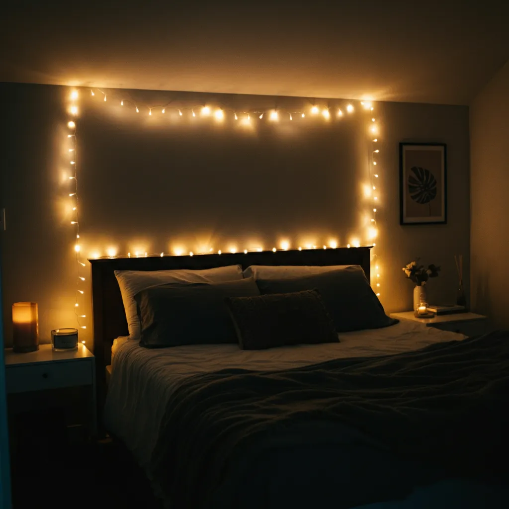 For a touch of whimsy and magic, drape fairy lights around your headboard, a mirror, or along the ceiling. Their delicate sparkle adds a dreamy quality to the room.
