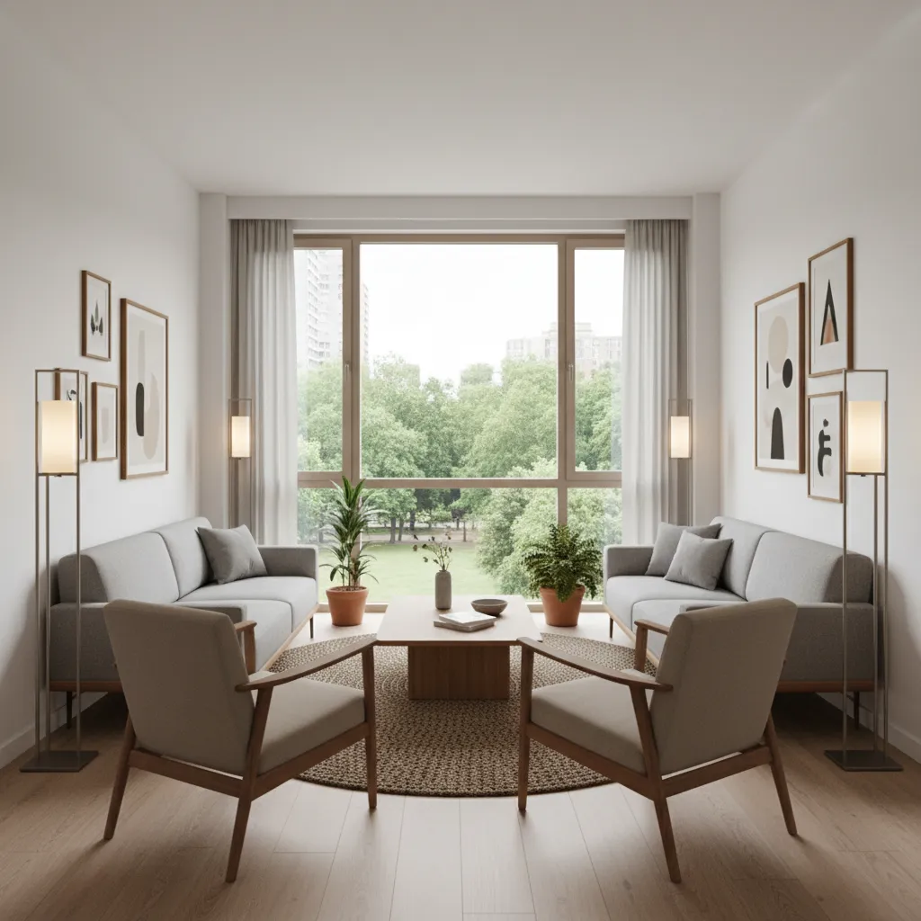 Tall, bulky furniture chops up the visual flow of a small room. Choose sofas and chairs with low backs to keep sightlines clear across the space. For another visually light and modern option, consider curtains in trending hues like those featured in Sage Green Curtain Ideas. Combine these low-profile pieces with tall, slender floor lamps to create a dynamic contrast in height that feels intentional and chic.