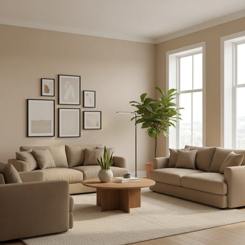 Warm neutrals like beige, taupe, and cream provide a soothing backdrop. To keep the room from looking washed out, introduce sharp, matte black accents. For more inspiration on mixing natural tones and creating inviting spaces, check out these farmhouse summer decor ideas. A matte black picture frame, a sleek black floor lamp, or black cabinet hardware provides the necessary contrast. This grounds the airy colors and gives the room a crisp, tailored finish.