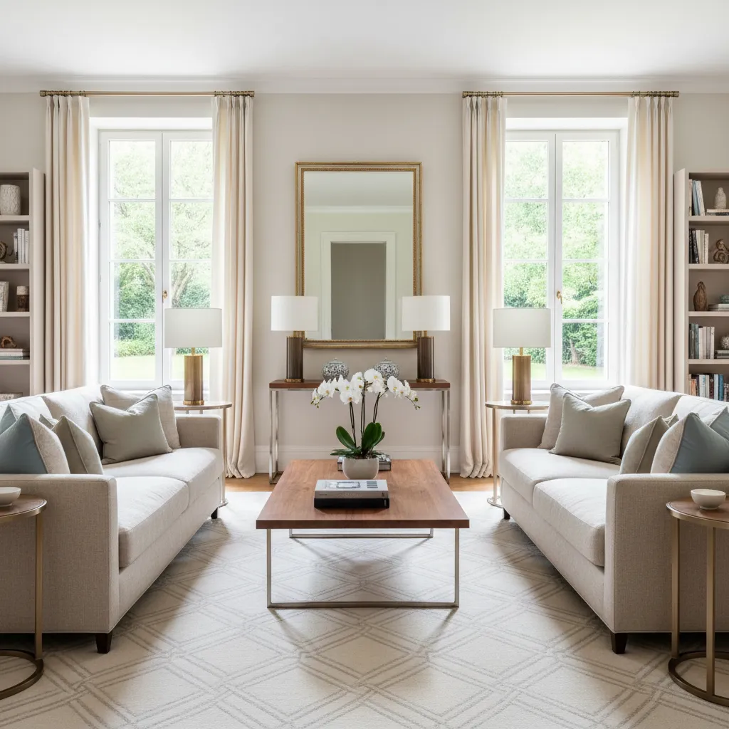 Symmetry brings order and calm to a room, which the human brain interprets as premium and designed. Anchor your living room with a central focal point, like a fireplace or a large piece of art. Place matching sofas facing each other, or position identical side tables and lamps on either end of your main seating. This simple layout trick costs nothing but completely reframes the room’s energy.