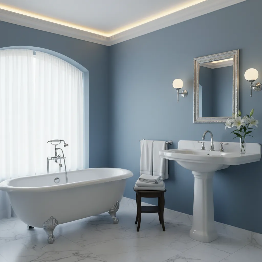 Think of the sky just after the sun sets. Dusty blue has gray undertones that keep it from looking like a nursery color. It feels sophisticated, serene, and incredibly grounding in a primary bathroom.