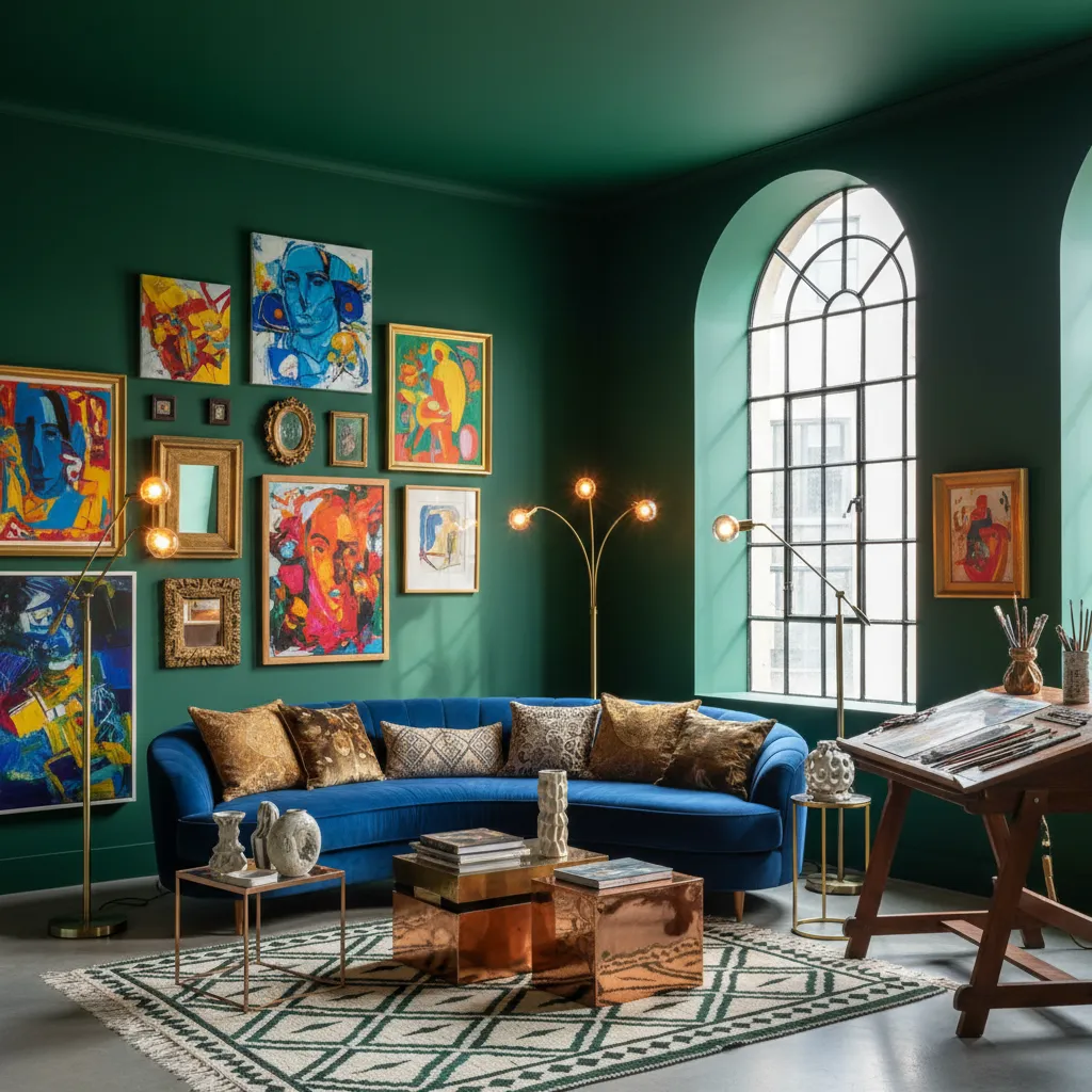 While light green is calming, deep emerald green is invigorating. It feels lush, bold, and highly creative. Paint an entire room—including the trim—in emerald for a moody, jewel-box effect that sparks inspiration.