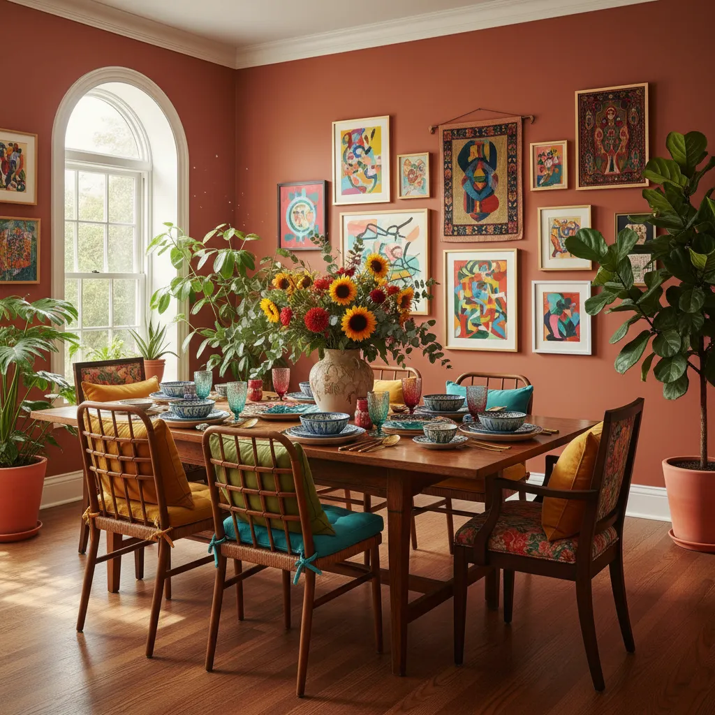 Earthy, rich, and warm, terracotta wraps a room in a vibrant yet grounded hug. It is a fantastic choice for a dining room because warm colors are known to stimulate appetite and lively conversation.