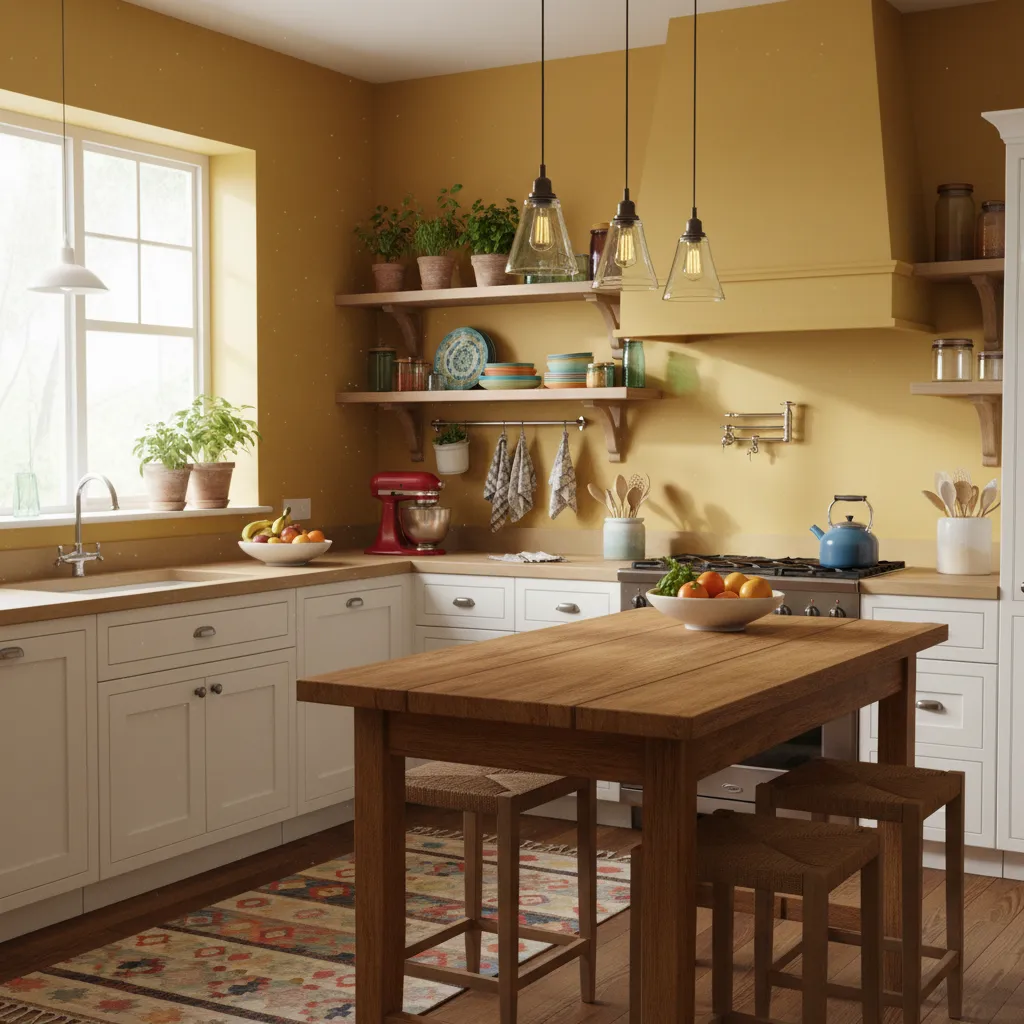 Yellow is the color of sunshine and optimism. A deep mustard shade avoids the harshness of bright primary yellow while still delivering a massive dose of cheer. Use it as an accent wall in a kitchen or breakfast nook.