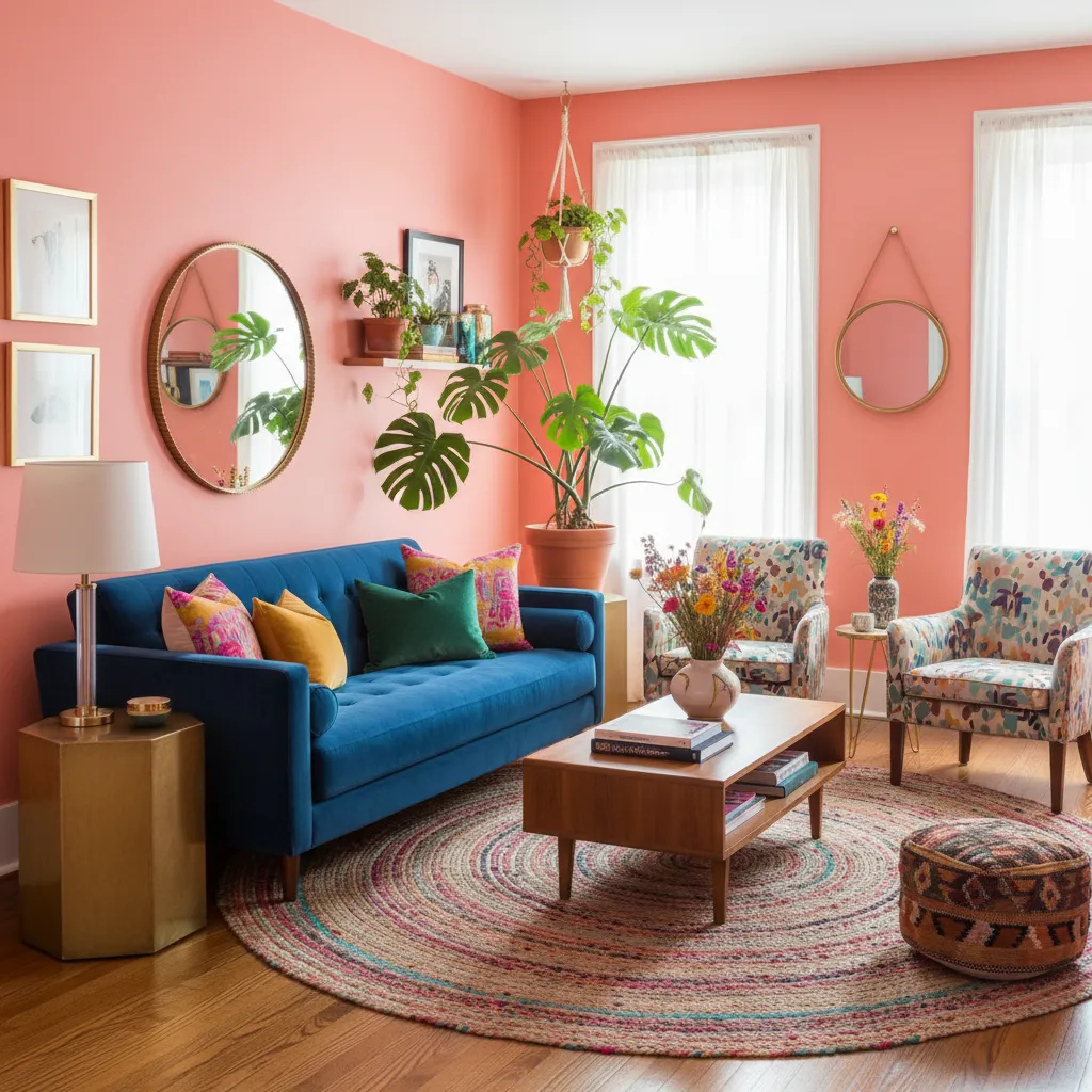Coral is energetic, playful, and surprisingly versatile. It instantly warms up a room and pairs beautifully with brass hardware and deep green plants. If you want to create Vibrant DIY Wall Murals, coral makes a fantastic base color.
