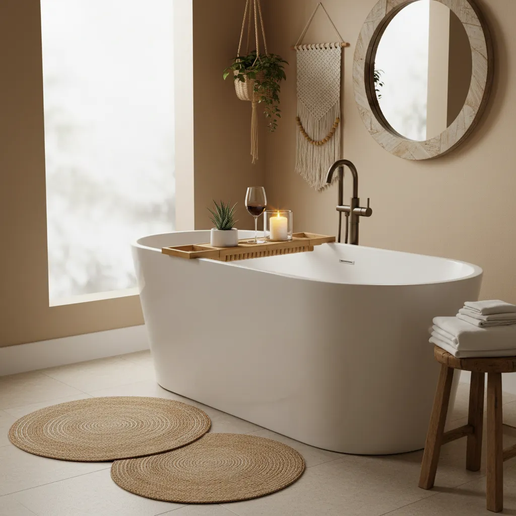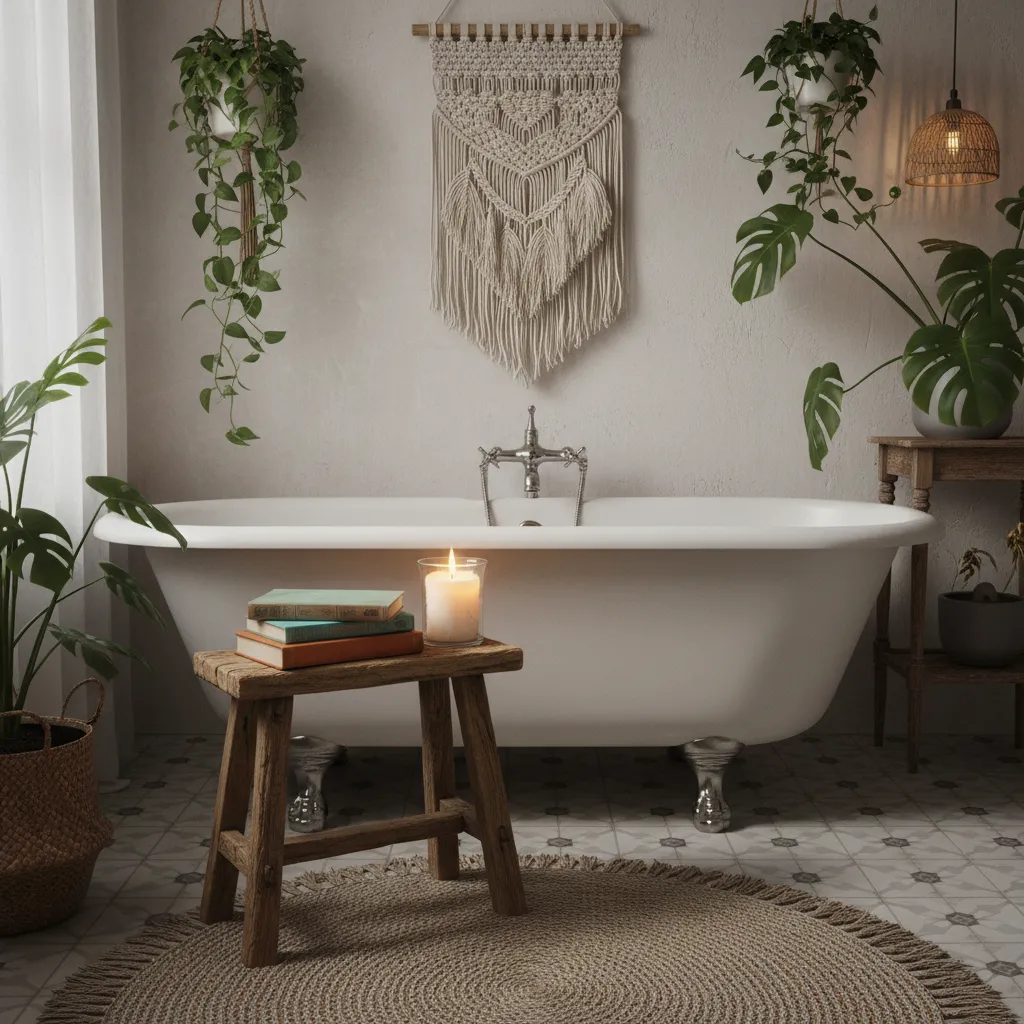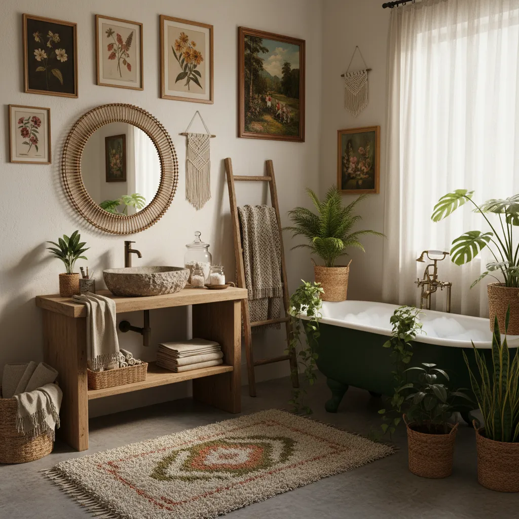 How can I make a boho bathroom cozy and practical?