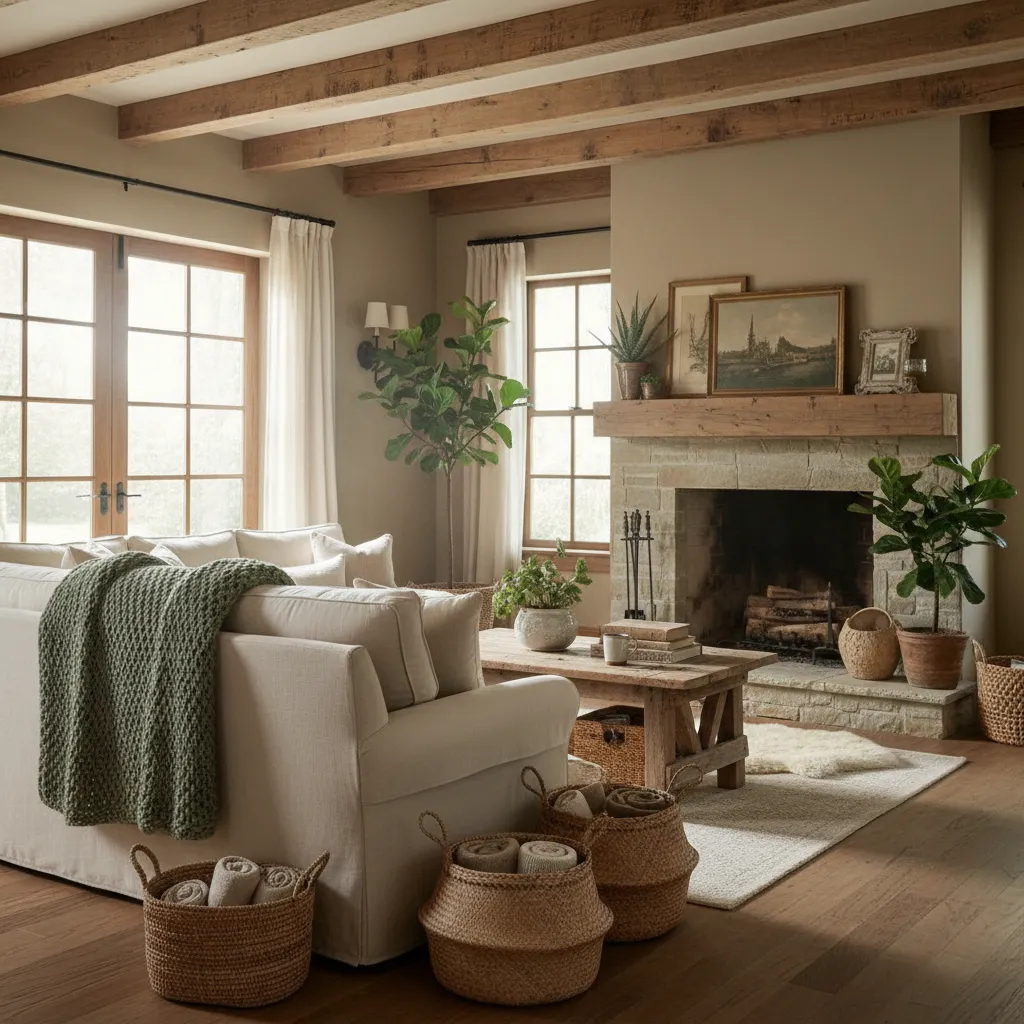 Warmth comes from texture. Bring in woven baskets, chunky knit blankets, and raw wood elements. For specific inspiration on blending rustic warmth with modern lines, browse these Charming Farmhouse Decor Ideas to see how budget-friendly materials create an inviting atmosphere.