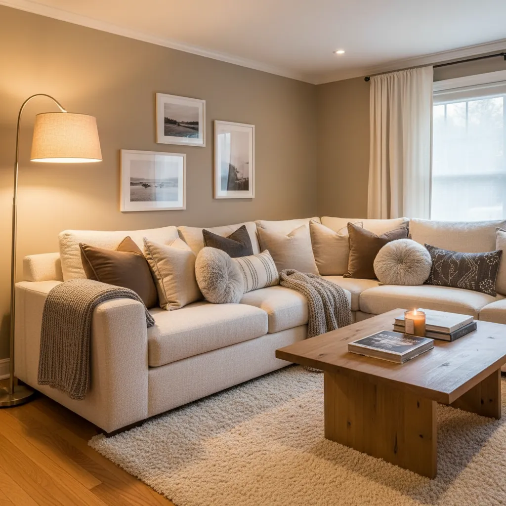 Never rely solely on the overhead fixture. A cozy home uses layered lighting: ambient (overall light), task (reading lamps), and accent (highlighting art or plants). Try placing a small table lamp on your kitchen counter or a warm floor lamp behind your reading chair.