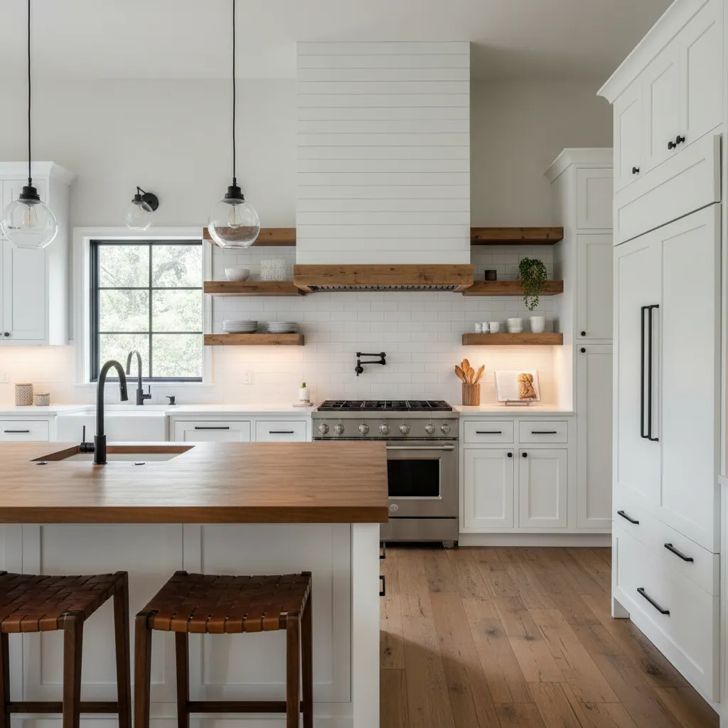 Treat your range hood as a focal point. Instead of hiding it, cover it in shiplap, reclaimed wood, or plaster. A plaster hood, in particular, offers a soft, old-world texture that pairs beautifully with modern cabinetry. It’s a subtle architectural detail that makes a massive impact on the room’s character.
