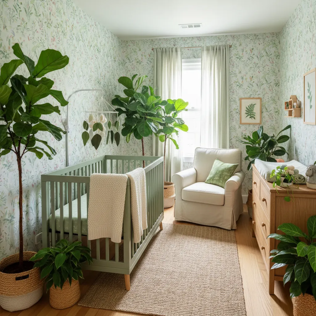 Bring the outdoors in with a plant-focused nursery. If you don’t have a green thumb, botanical prints on wallpaper or bedding work just as well. Large leafy plants (placed safely out of reach) purify the air and add a vibrant pop of life to the room.