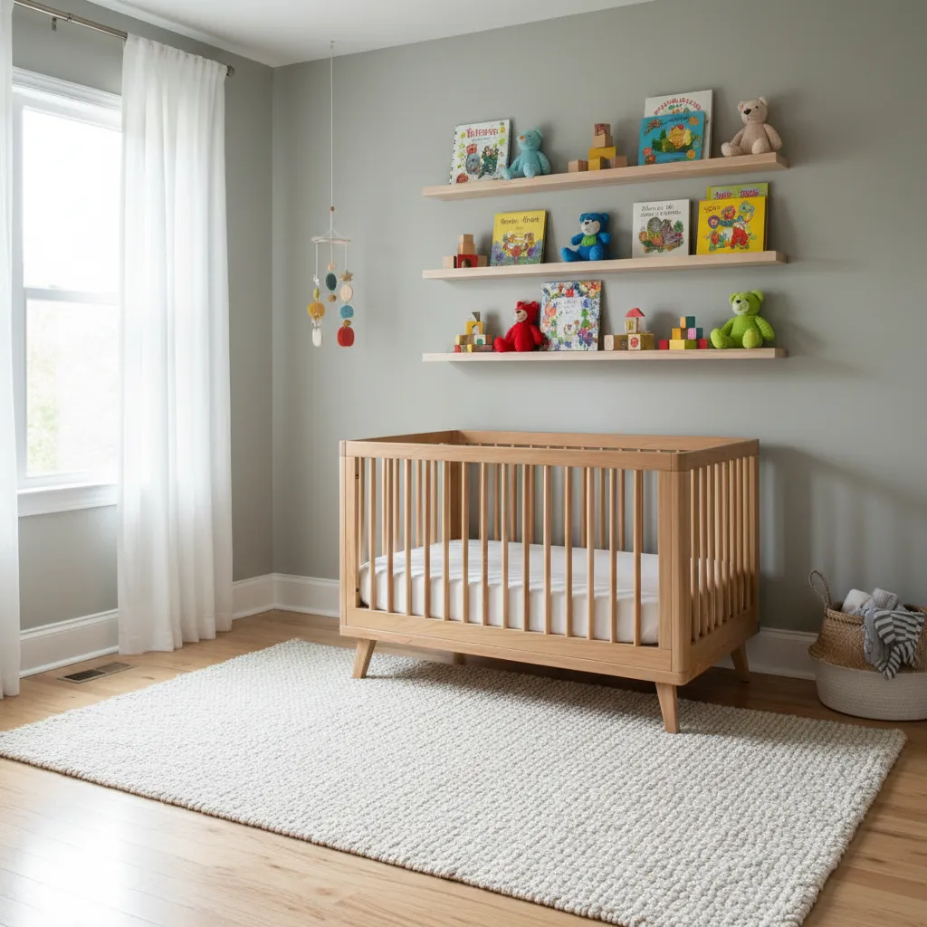 Incorporating natural wood is essential for adding warmth. From a solid oak crib to floating pine shelves, wood elements ground the space. You might find inspiration in Enchanting Nursery Room Ideas that showcase how raw timber can transform a simple room into a woodland retreat.