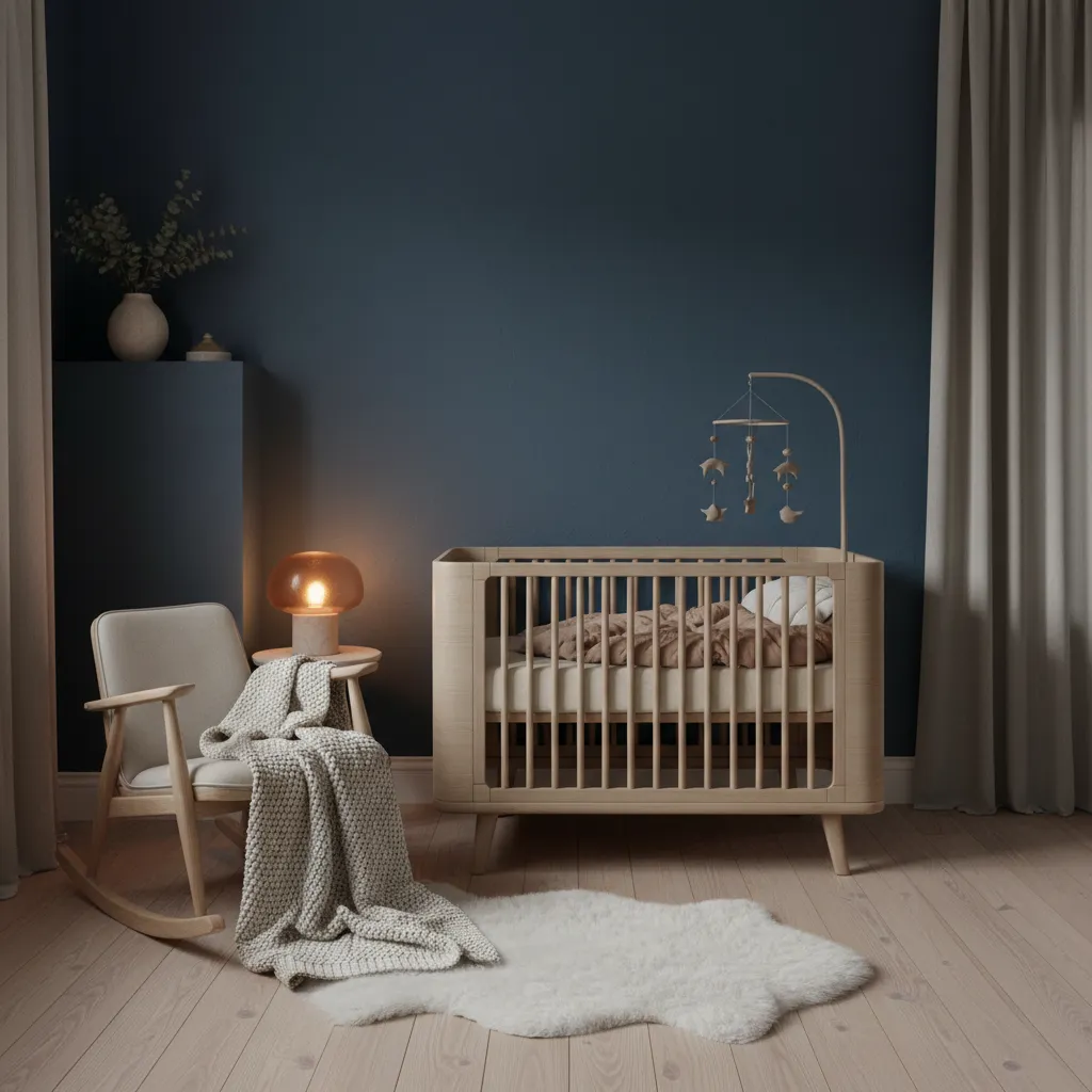 Who says nurseries have to be light? A dark, moody wall in slate blue or charcoal gray can create a womb-like, cozy atmosphere perfect for sleep. Balance the darkness with light wood furniture and warm lighting to ensure the space feels inviting rather than cave-like.