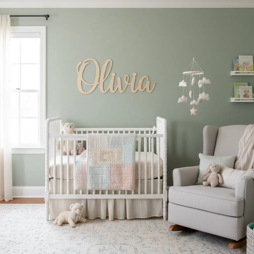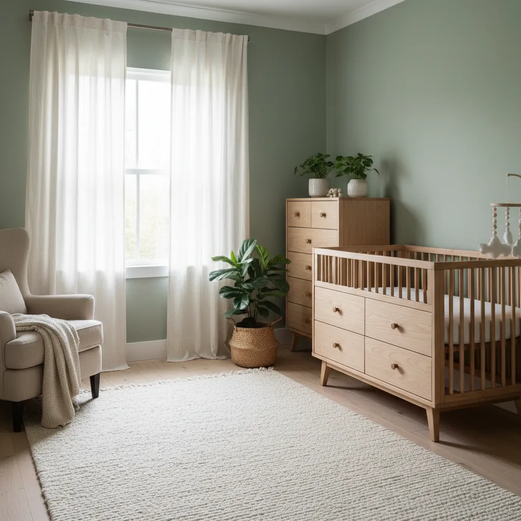 Sage green is nature’s neutral. It is calming, restorative, and pairs effortlessly with almost any other color. A sage green nursery feels like a breath of fresh air. You might incorporate this through soft linen curtains or a plush rug, creating a backdrop that feels organic and alive.