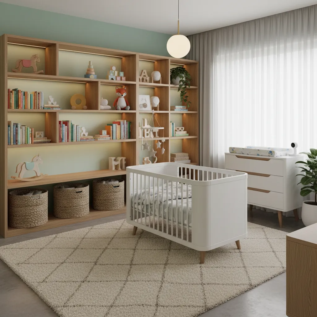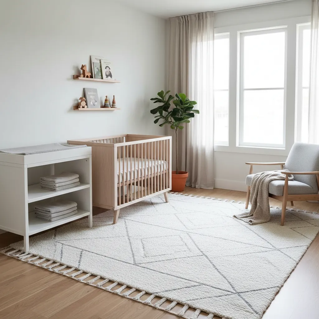 Clean lines, functional furniture, and a “less is more” attitude define this style. It focuses on practicality and light. A clutter-free space is a calm space, which is exactly what new parents need.